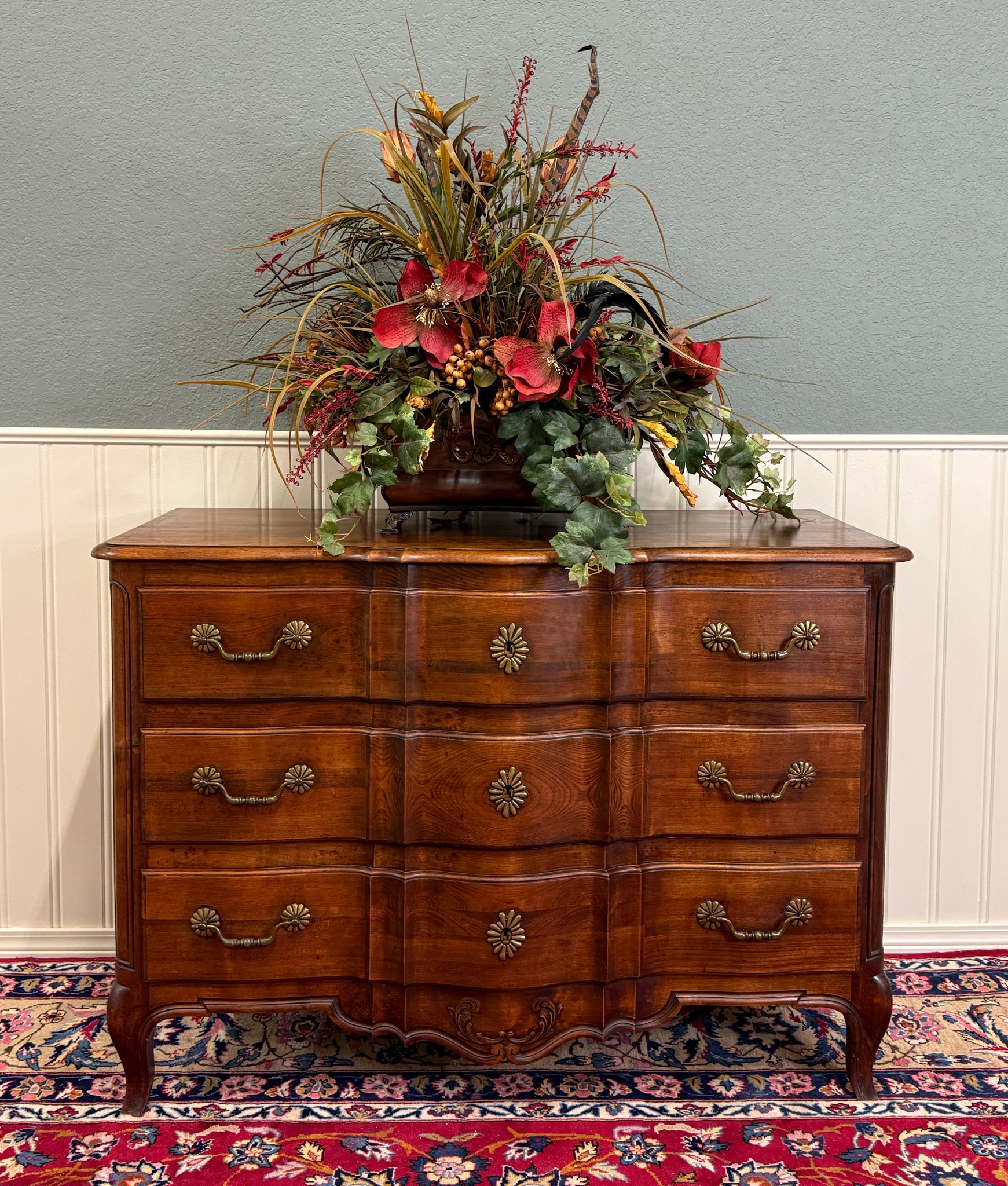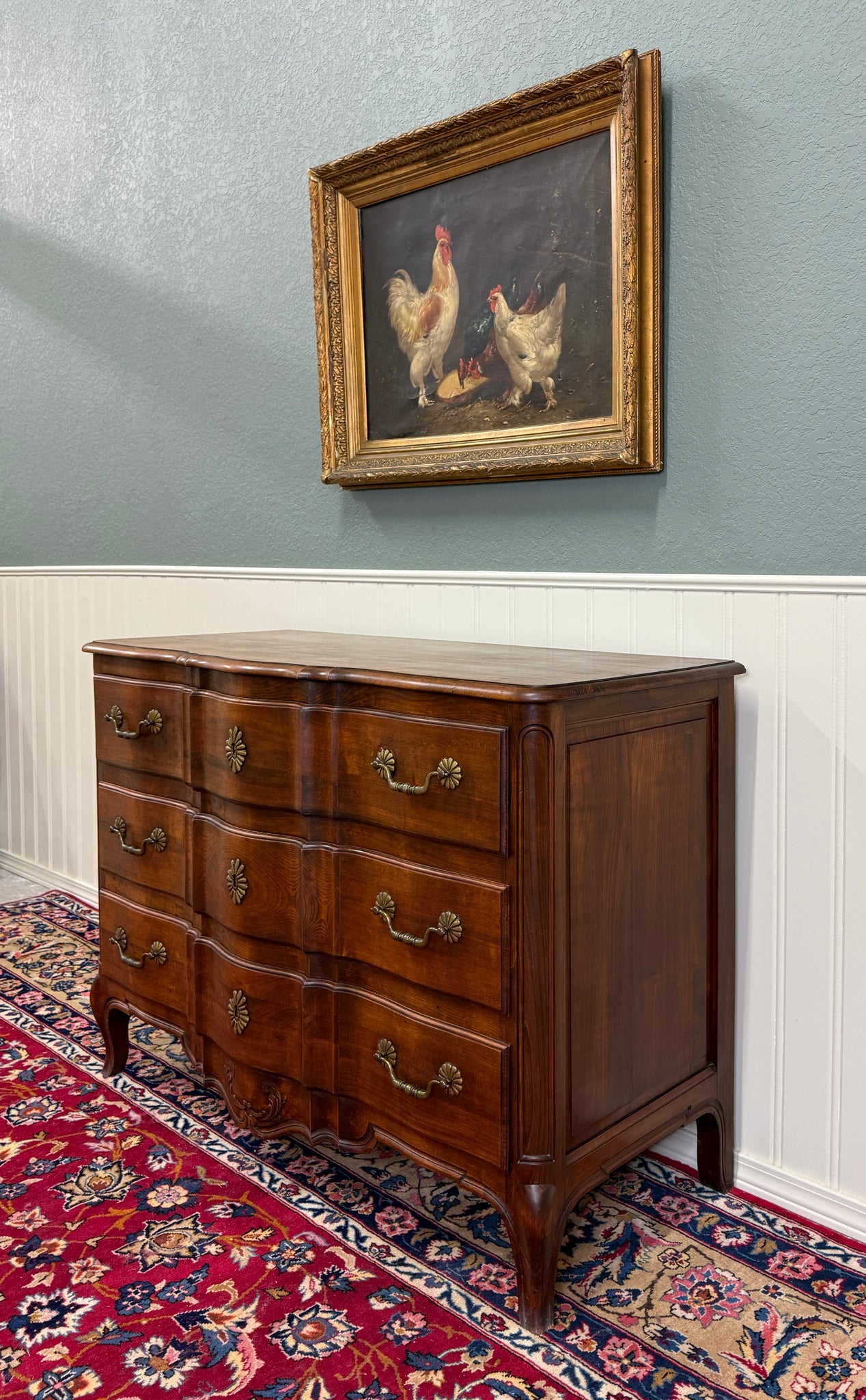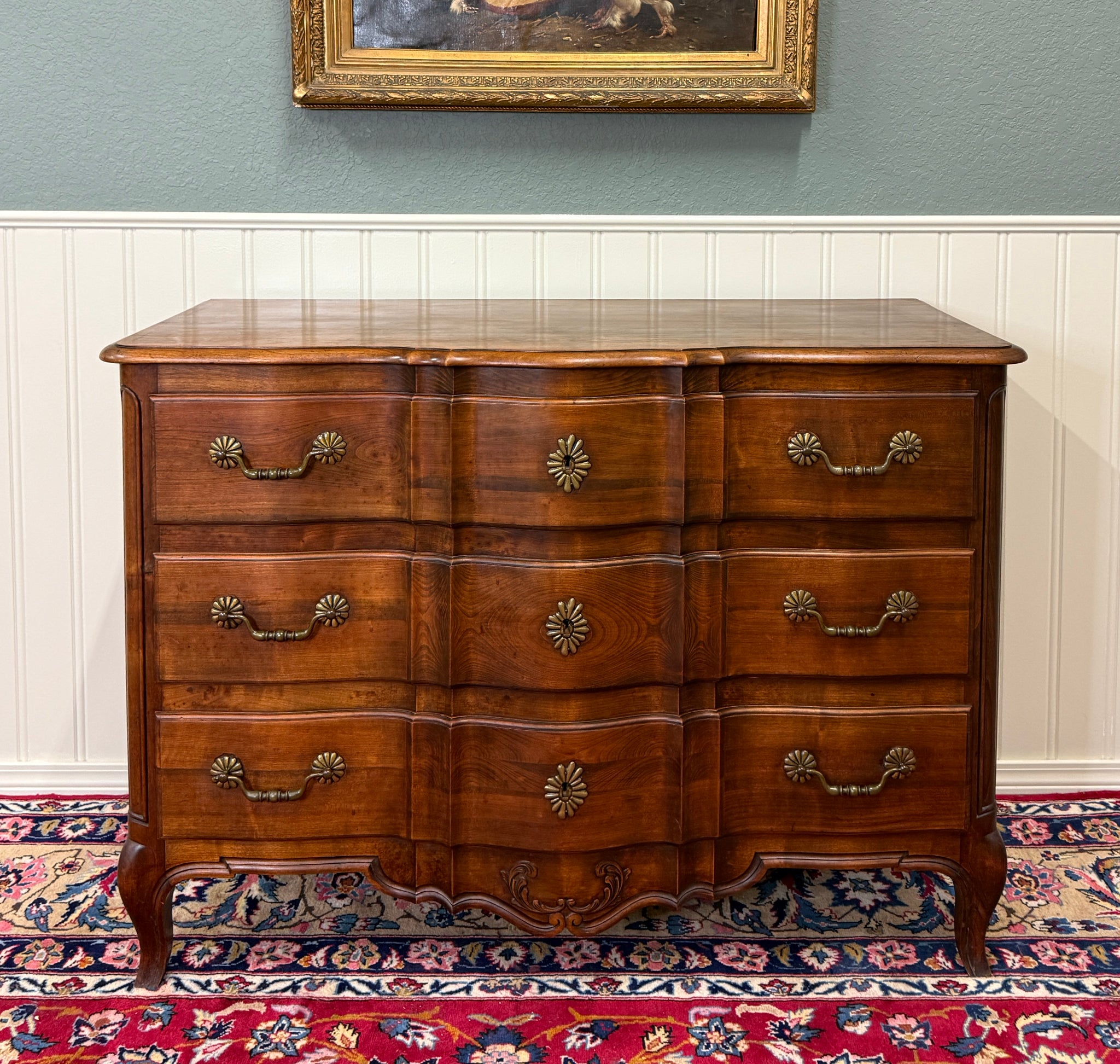 EXQUISITE Antique French Country Oak Louis XV Style Serpentine Front Chest of Drawers or Commode~~1930s