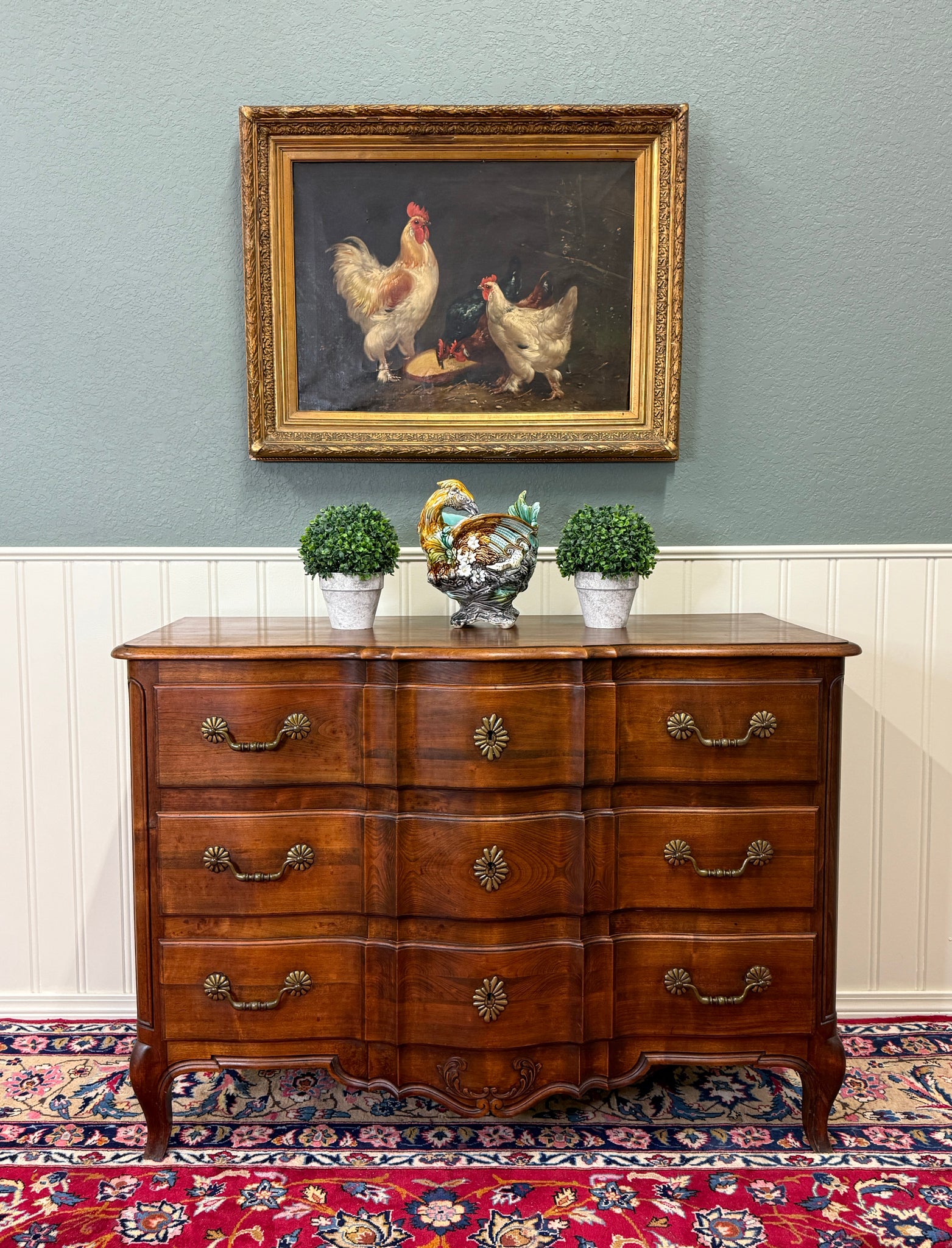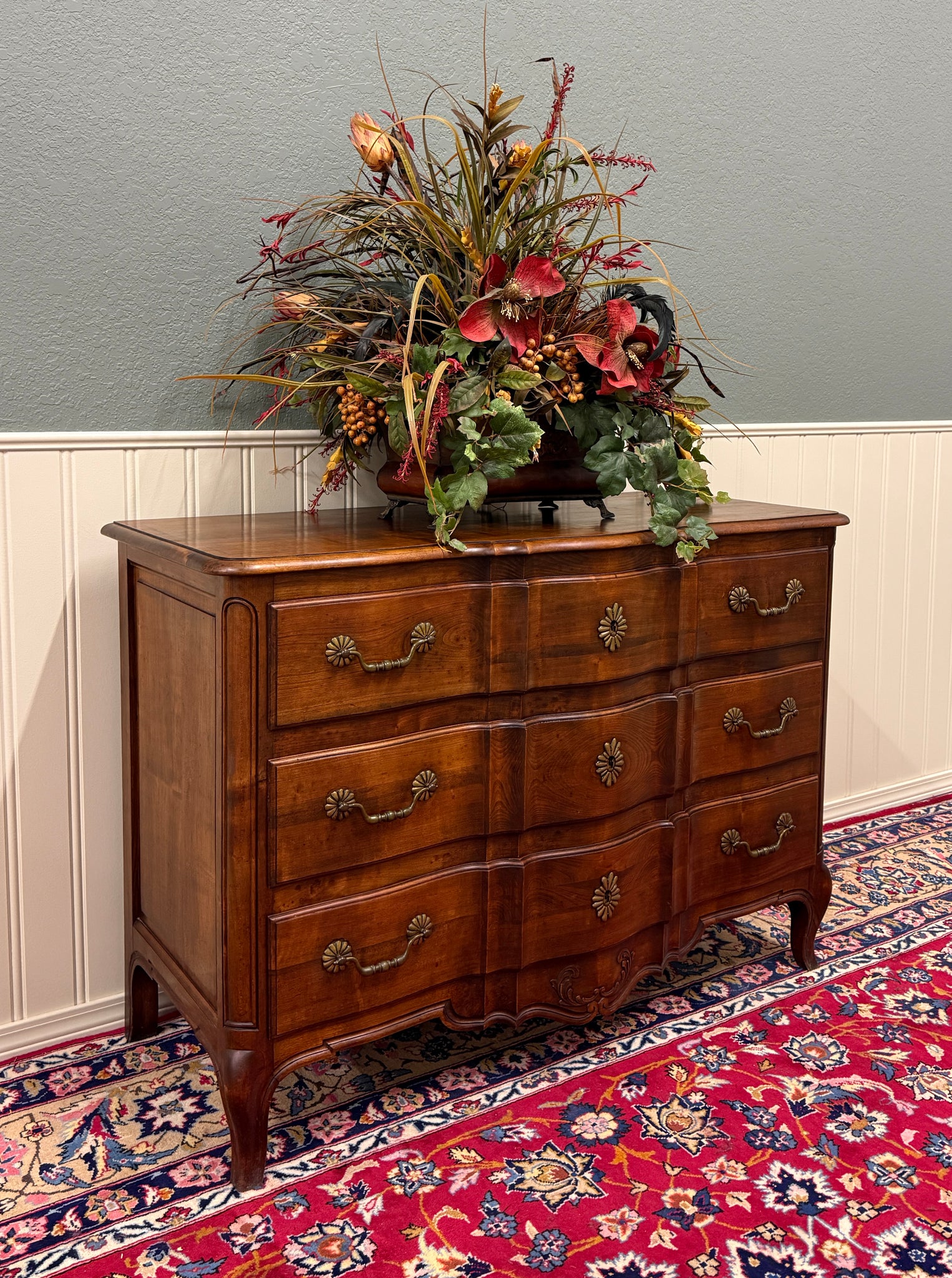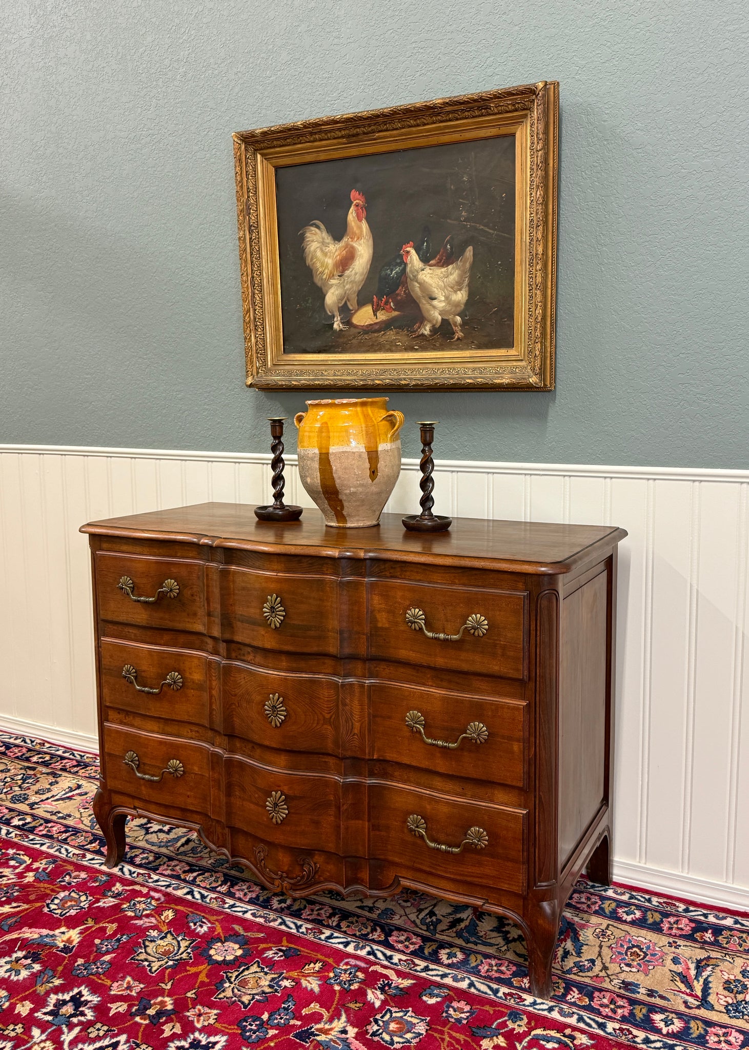 EXQUISITE Antique French Country Oak Louis XV Style Serpentine Front Chest of Drawers or Commode~~1930s