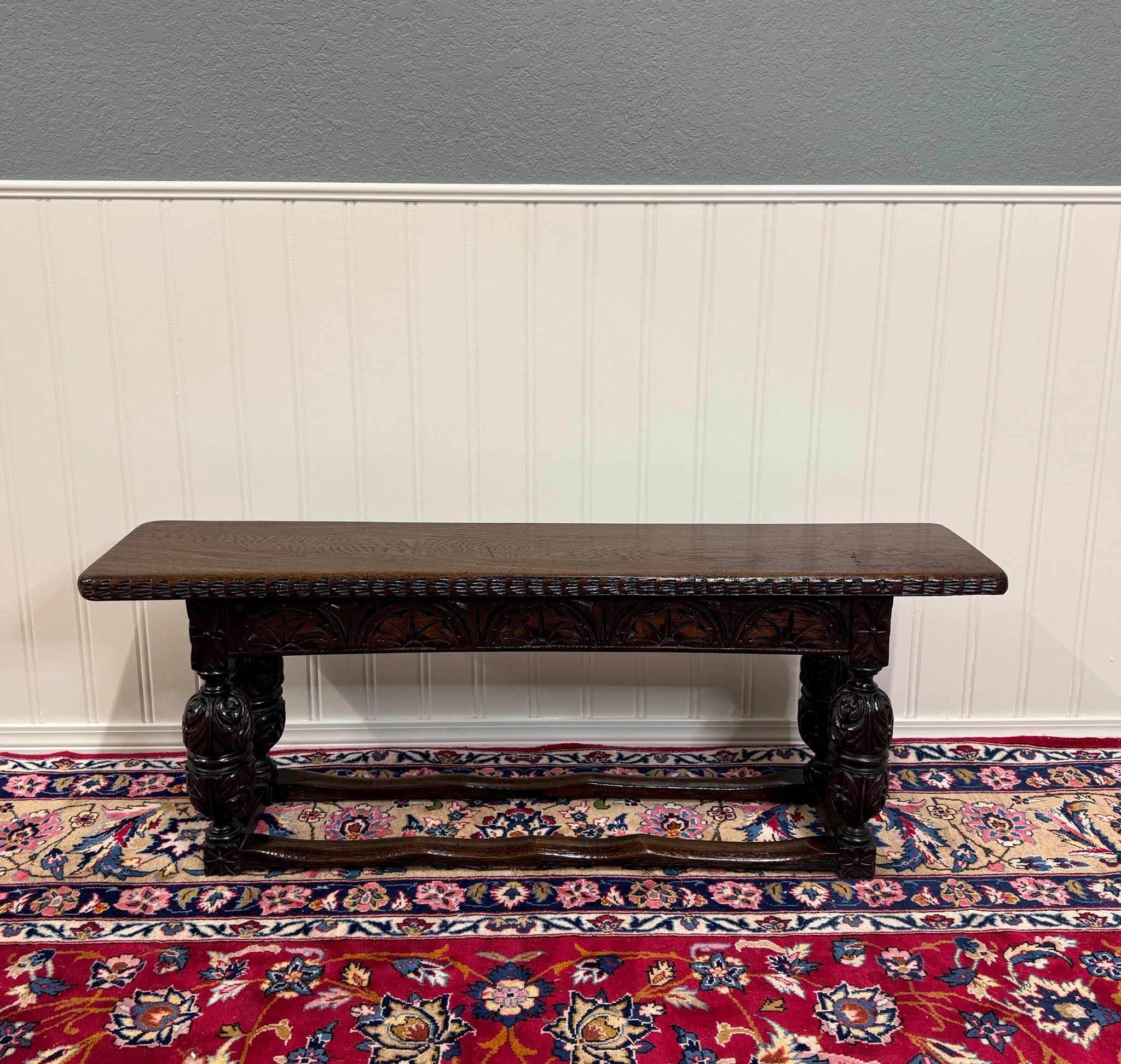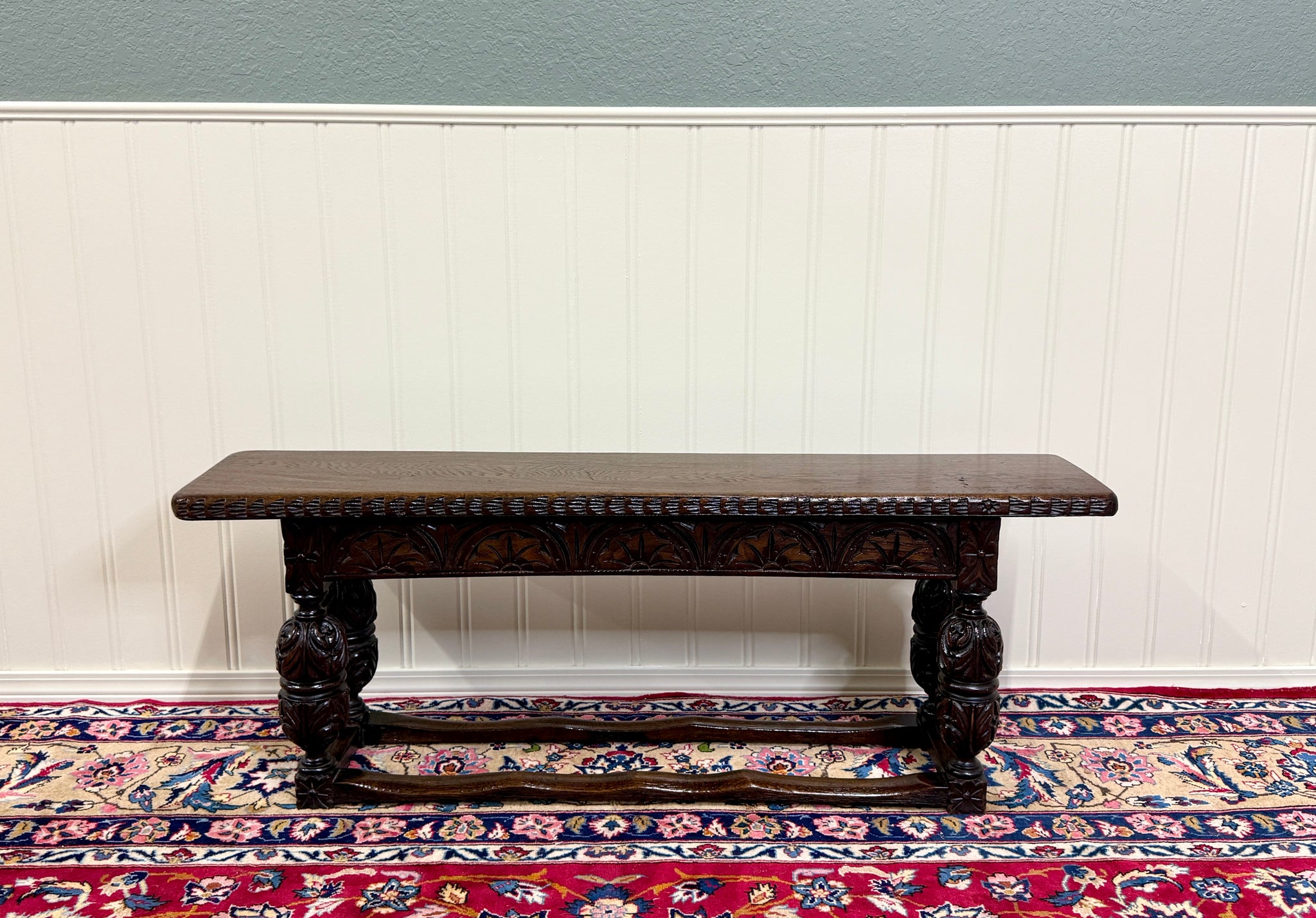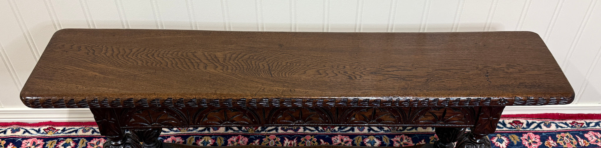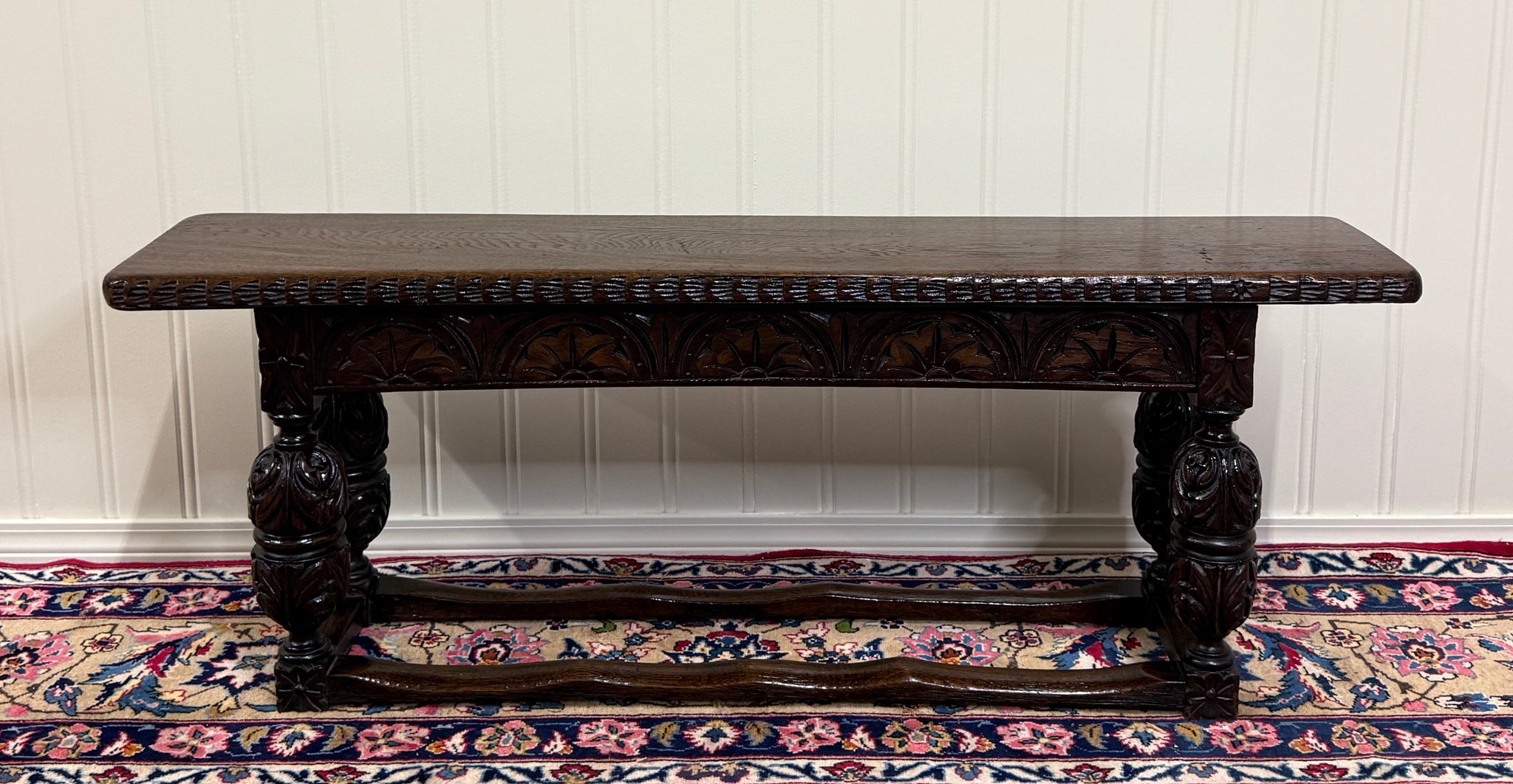 BEAUTIFUL Antique English Carved Oak Window Seat or End-of-Bed Bench