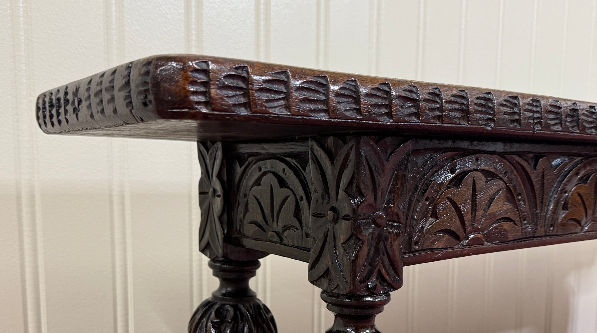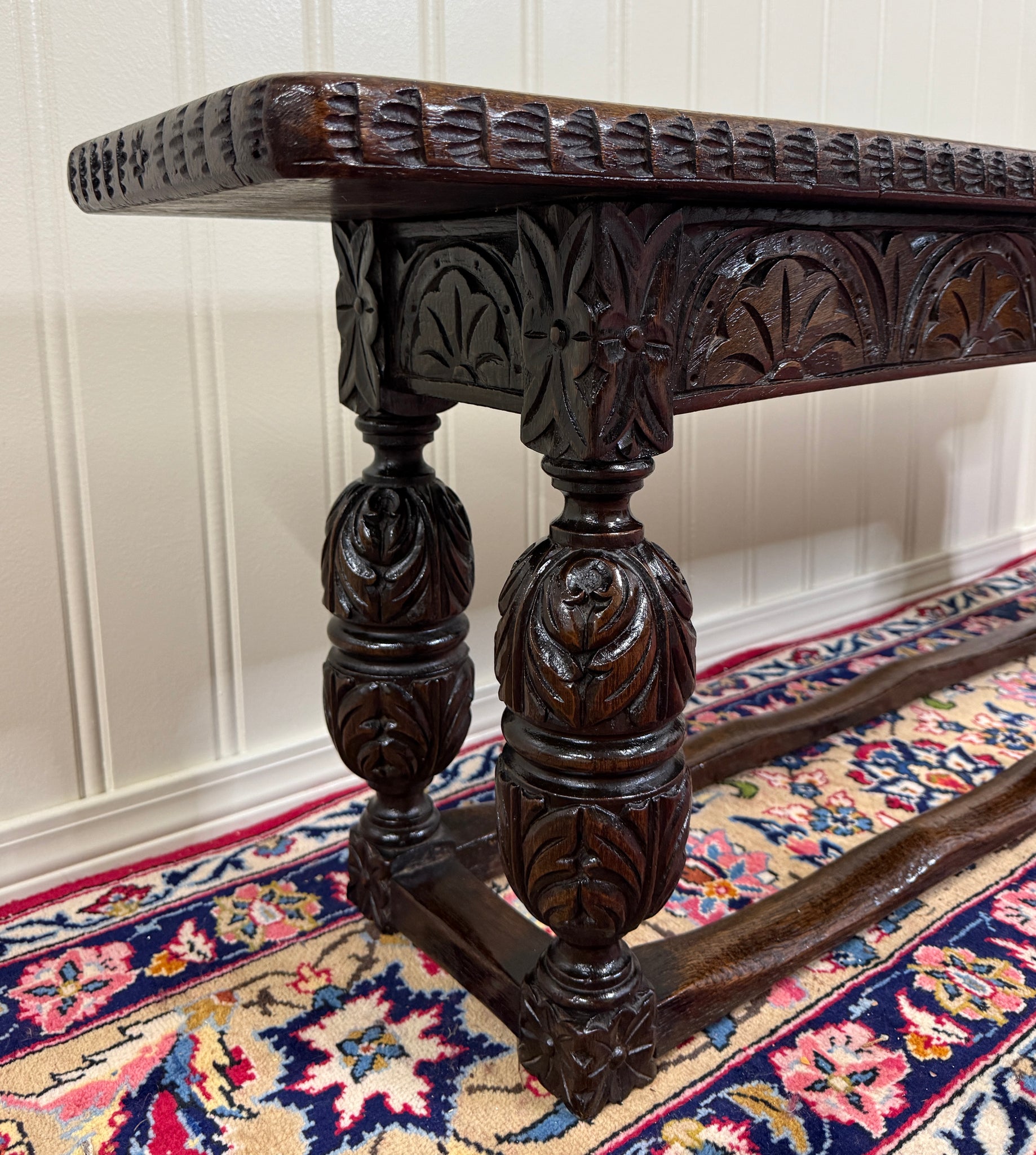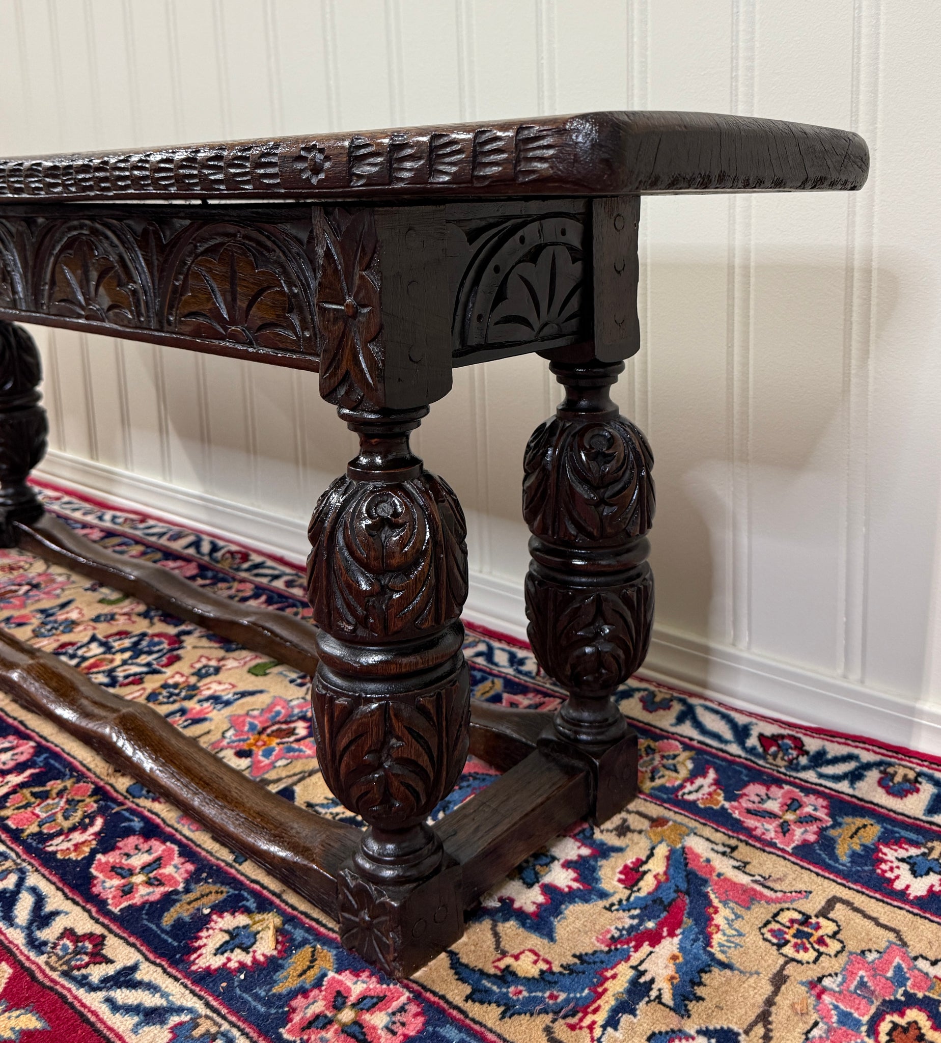BEAUTIFUL Antique English Carved Oak Window Seat or End-of-Bed Bench