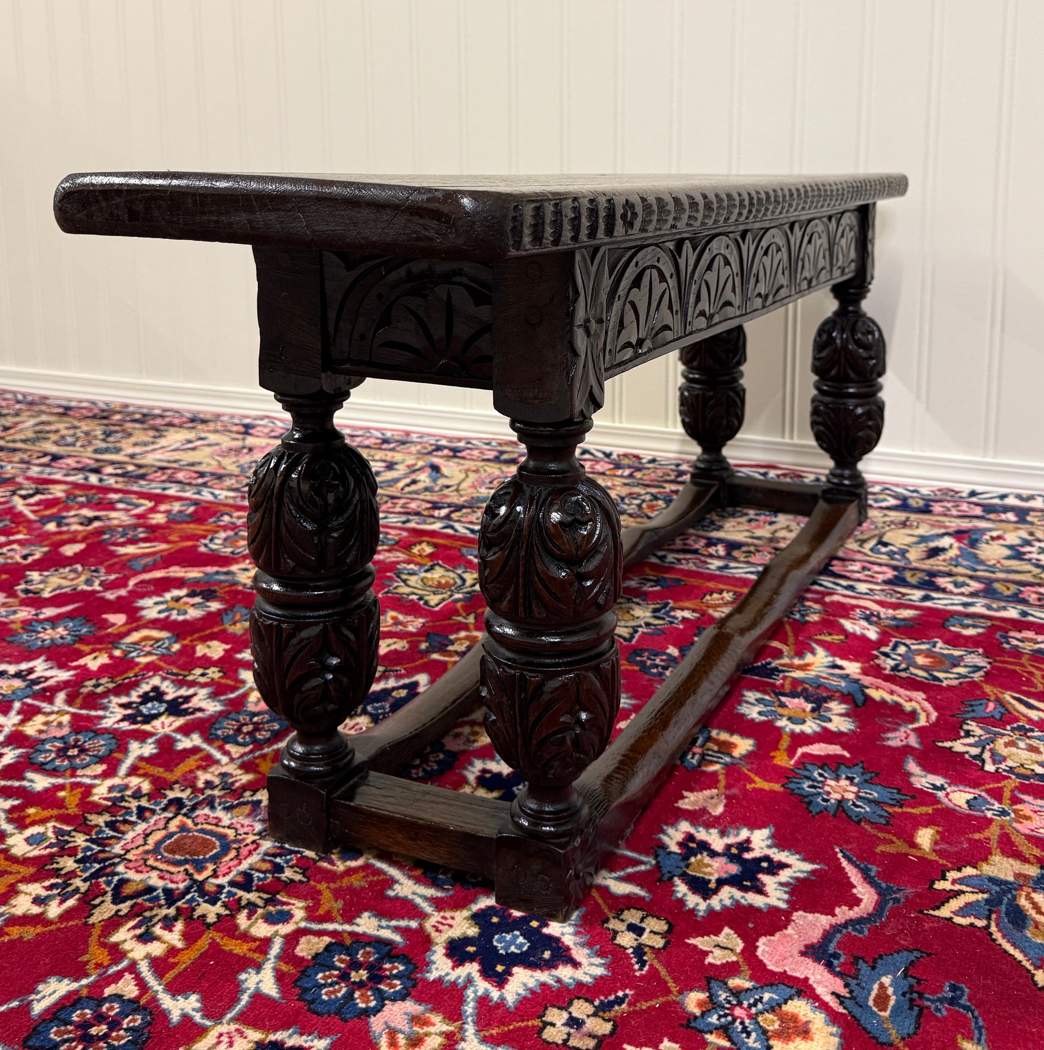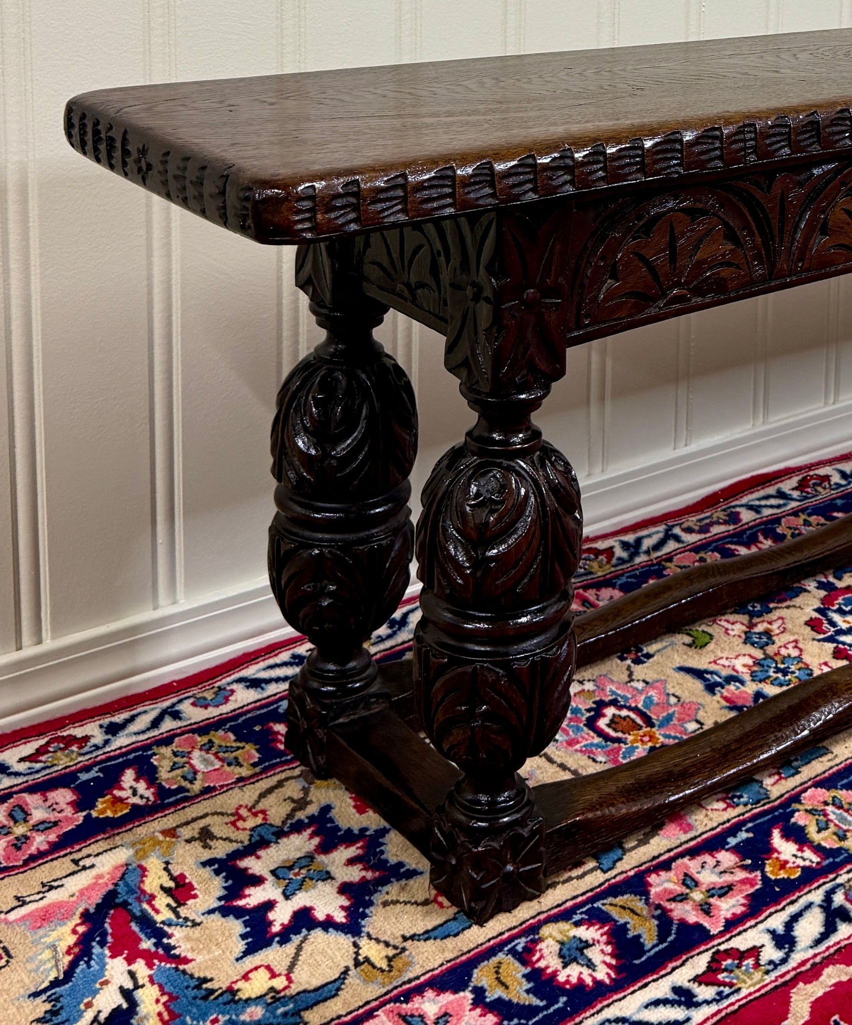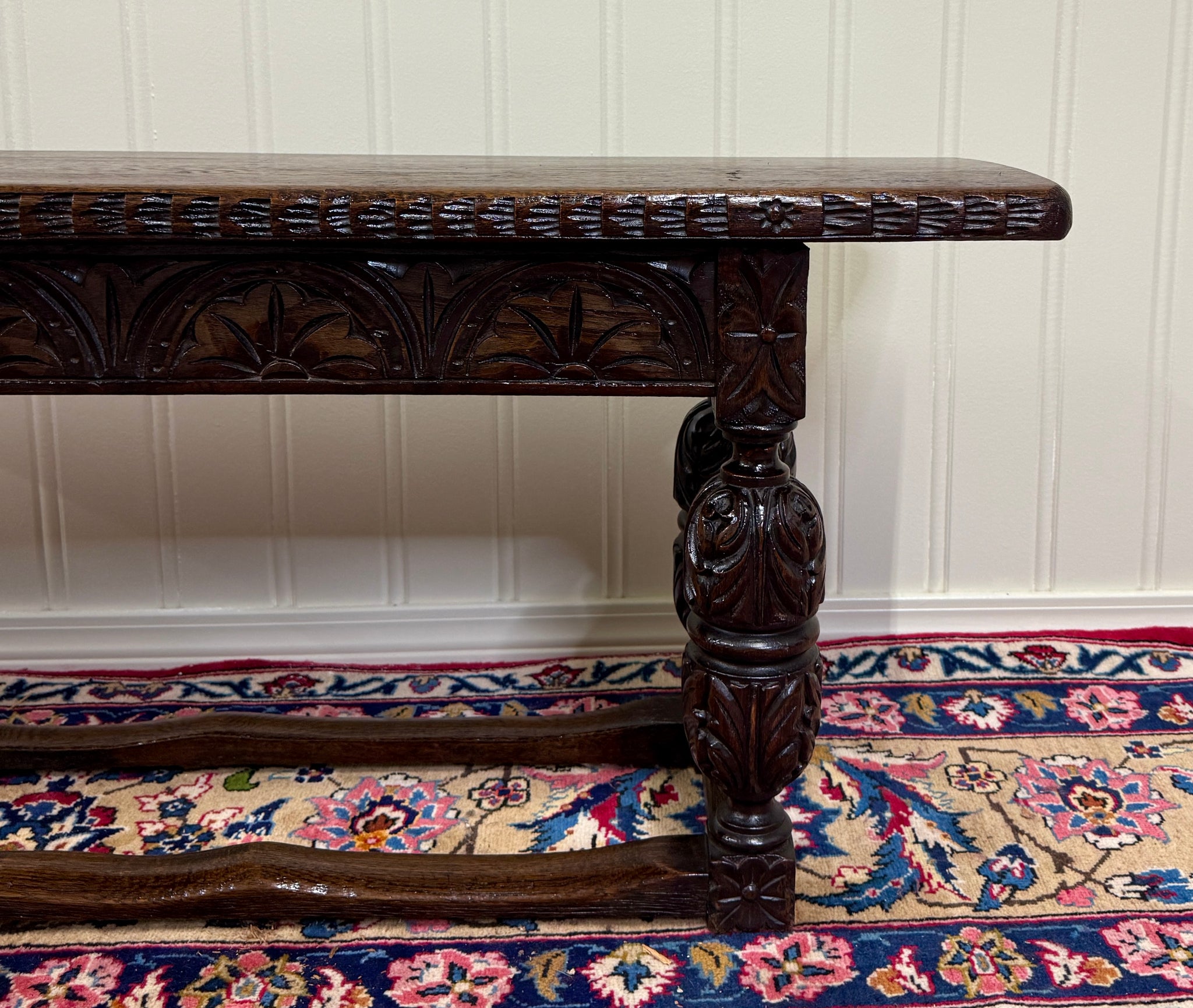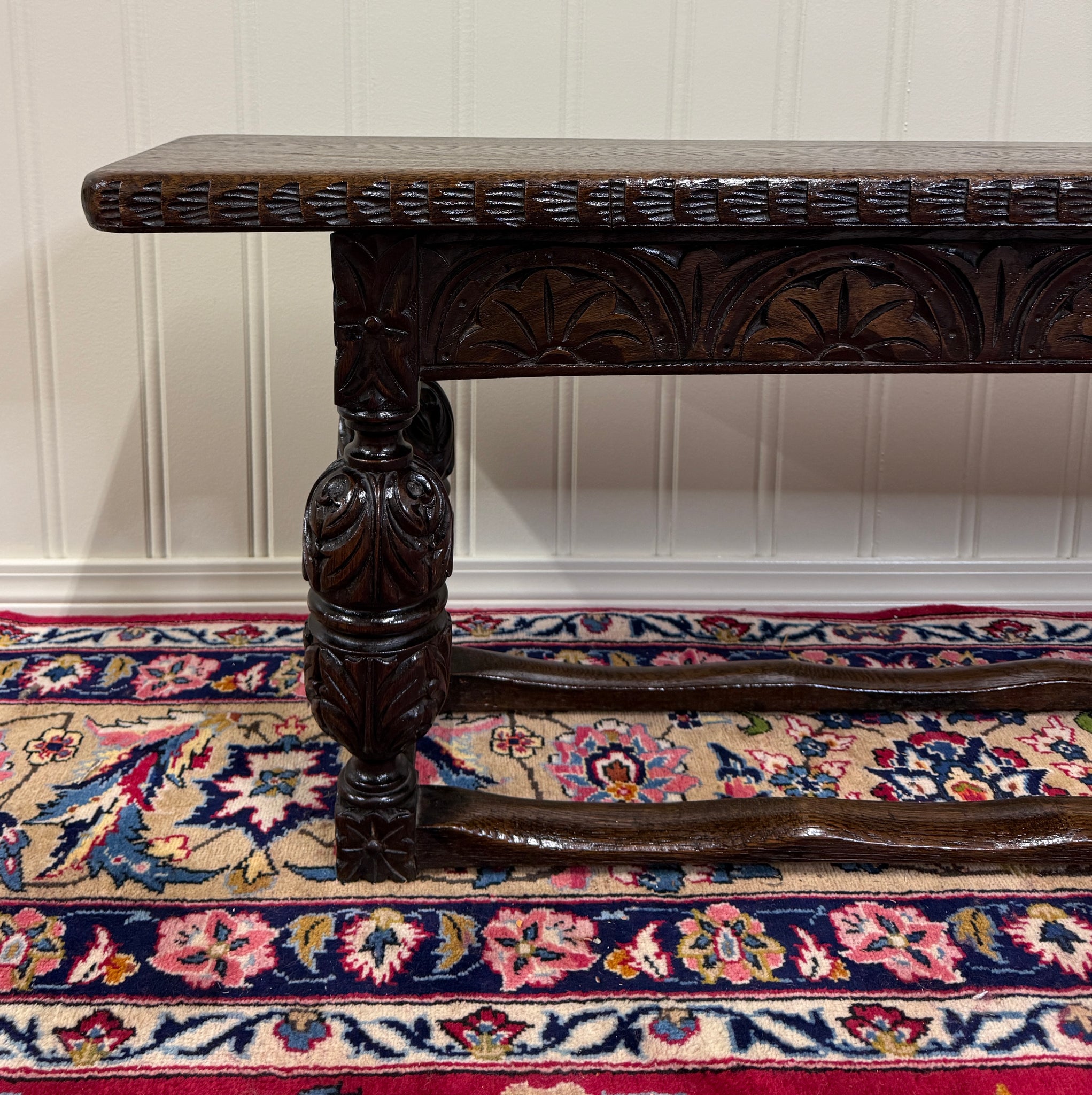 BEAUTIFUL Antique English Carved Oak Window Seat or End-of-Bed Bench
