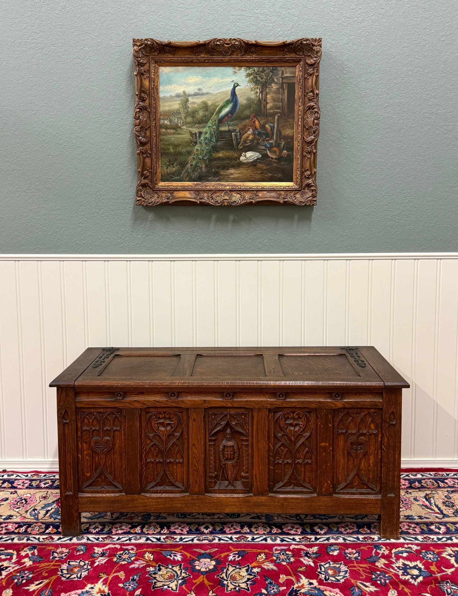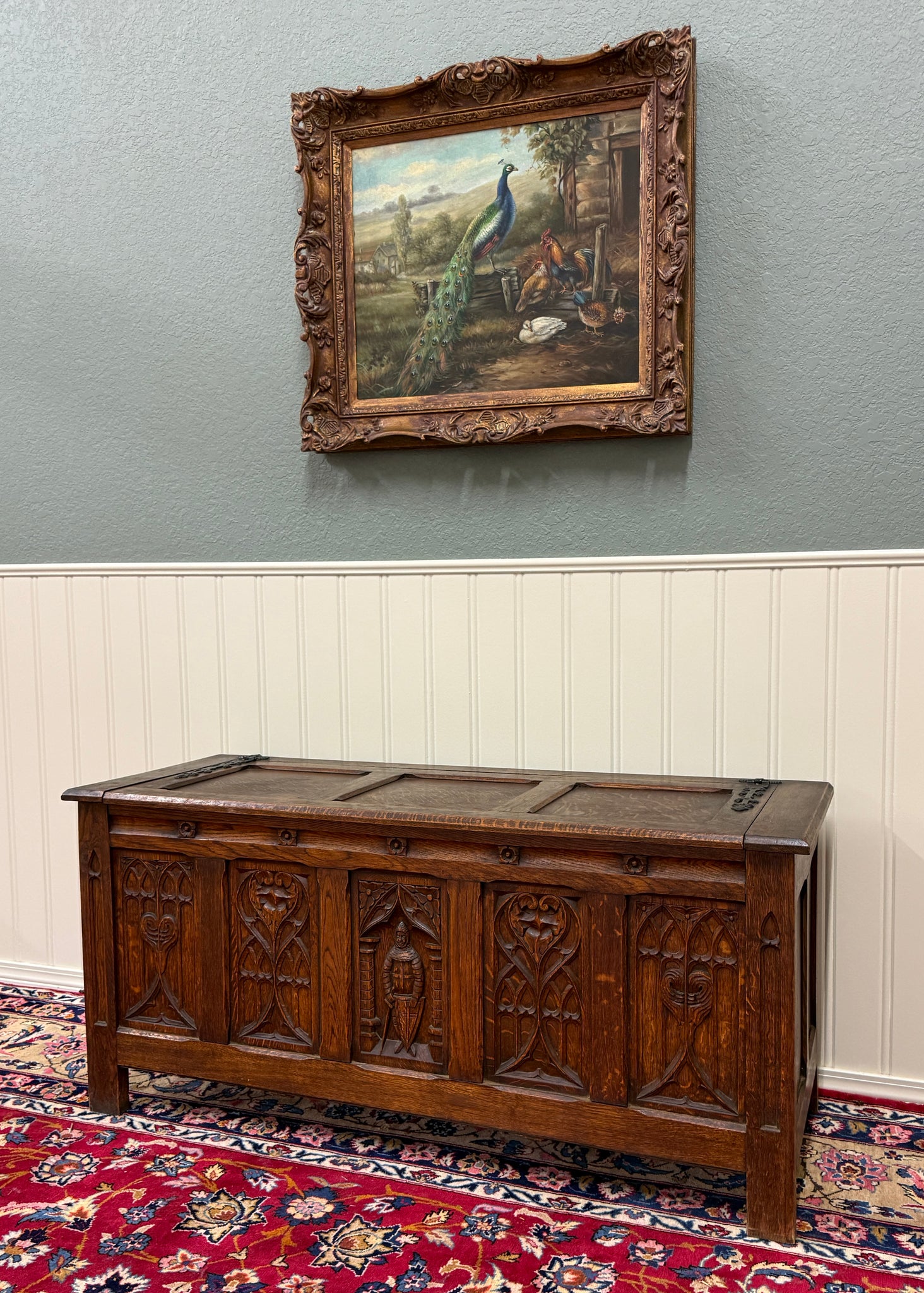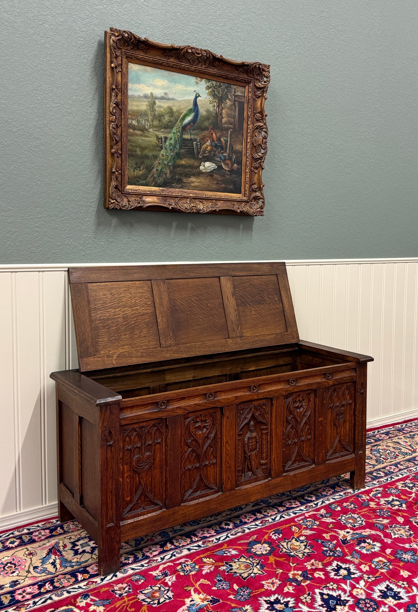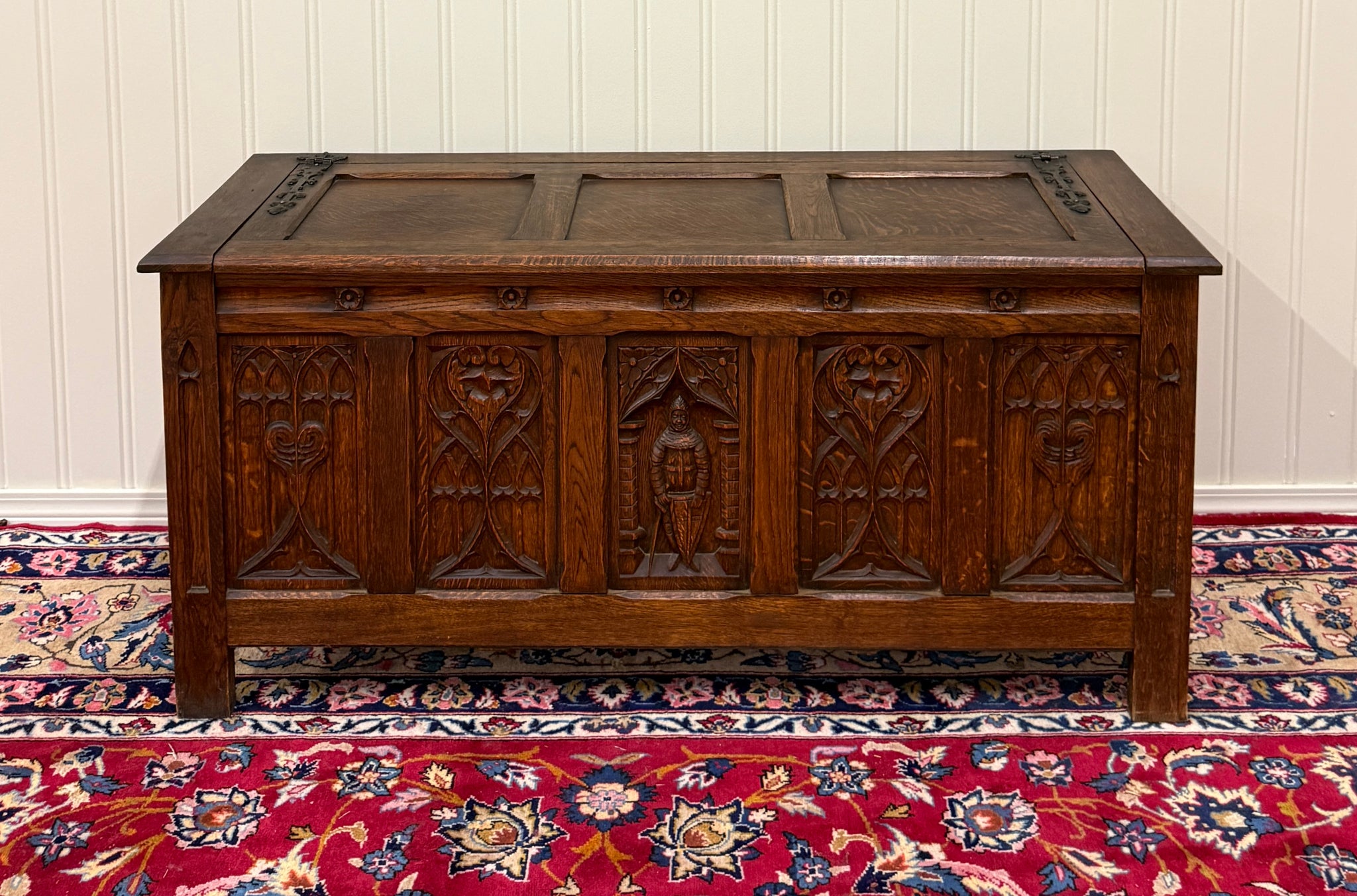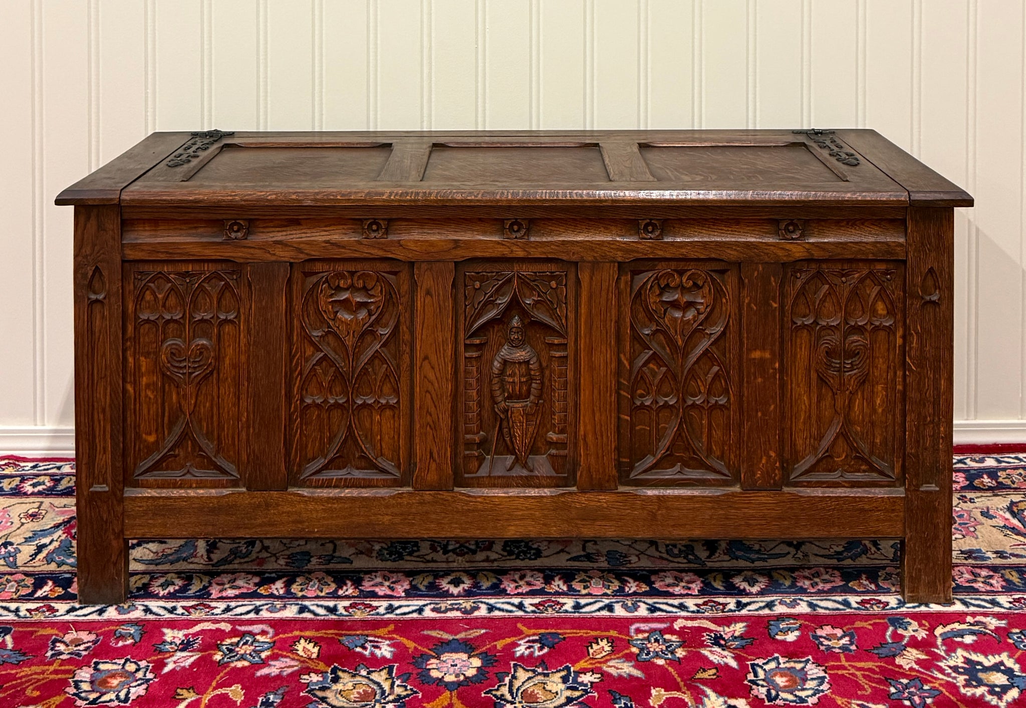 Antique French Gothic Trunk Chest Blanket Box Storage Coffer Knights Oak 19thC
