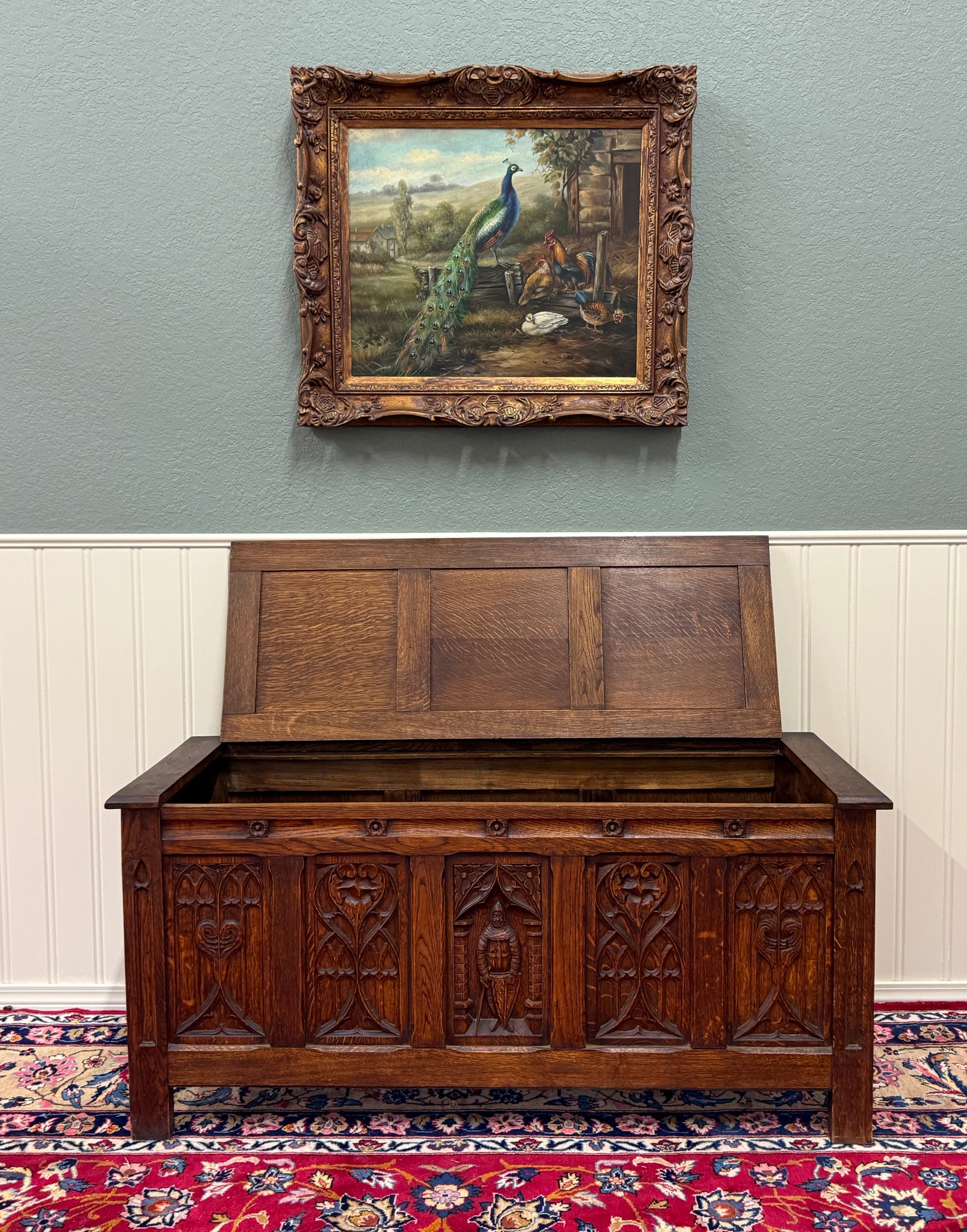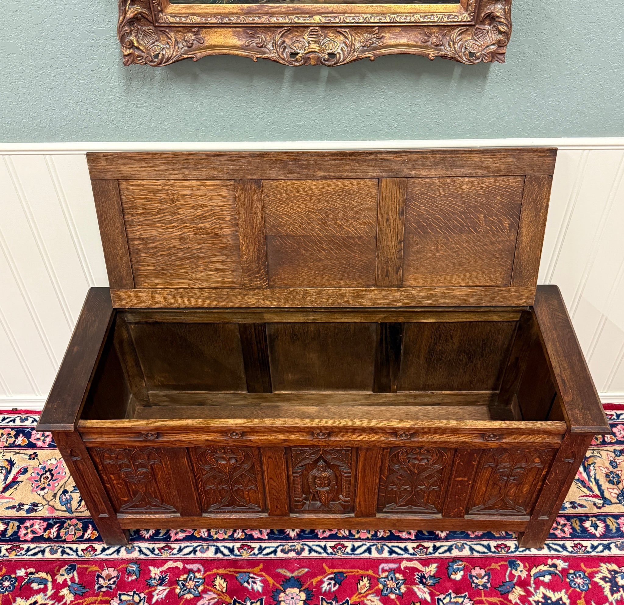 LOVELY Antique French Gothic Trunk, Chest, Blanket Box, Coffer, or Coffee Table with Lift-Top Storage~~HIGHLY CARVED~~c. 1920s-30s