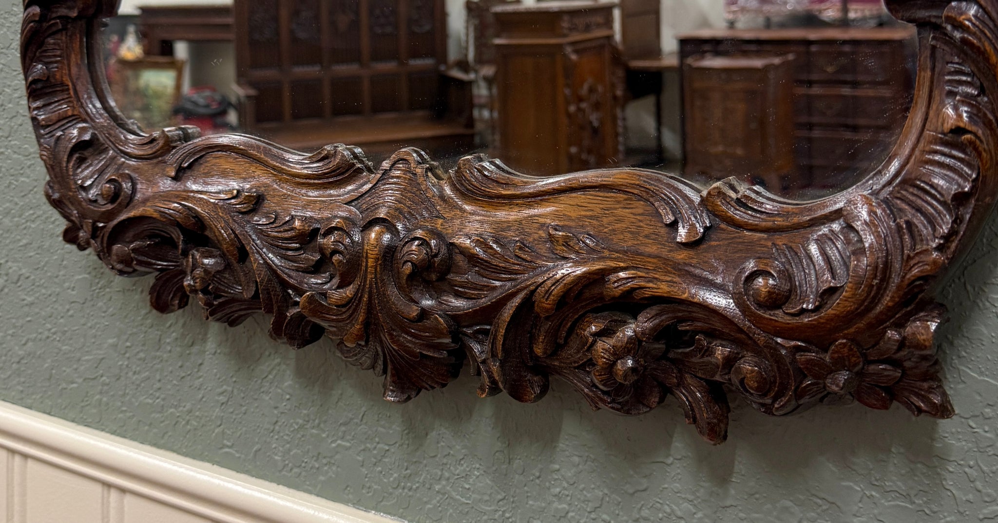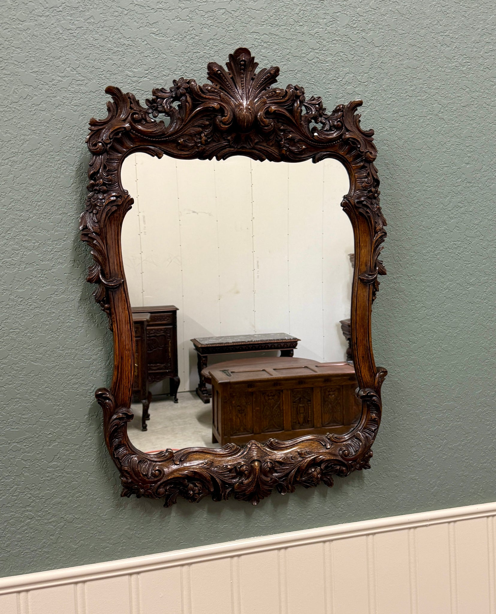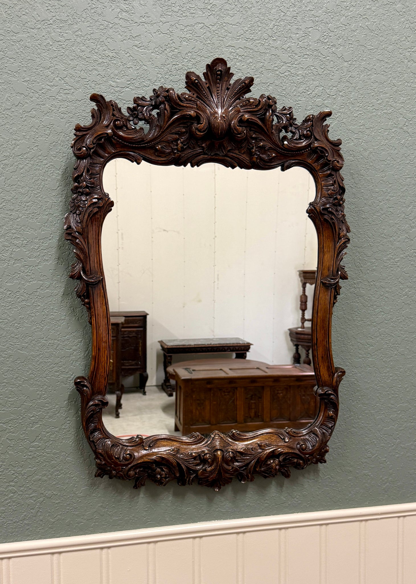 GORGEOUS Antique French Rococo Style Framed HIGHLY CARVED Oak Wall Mirror~~c. early 1900s