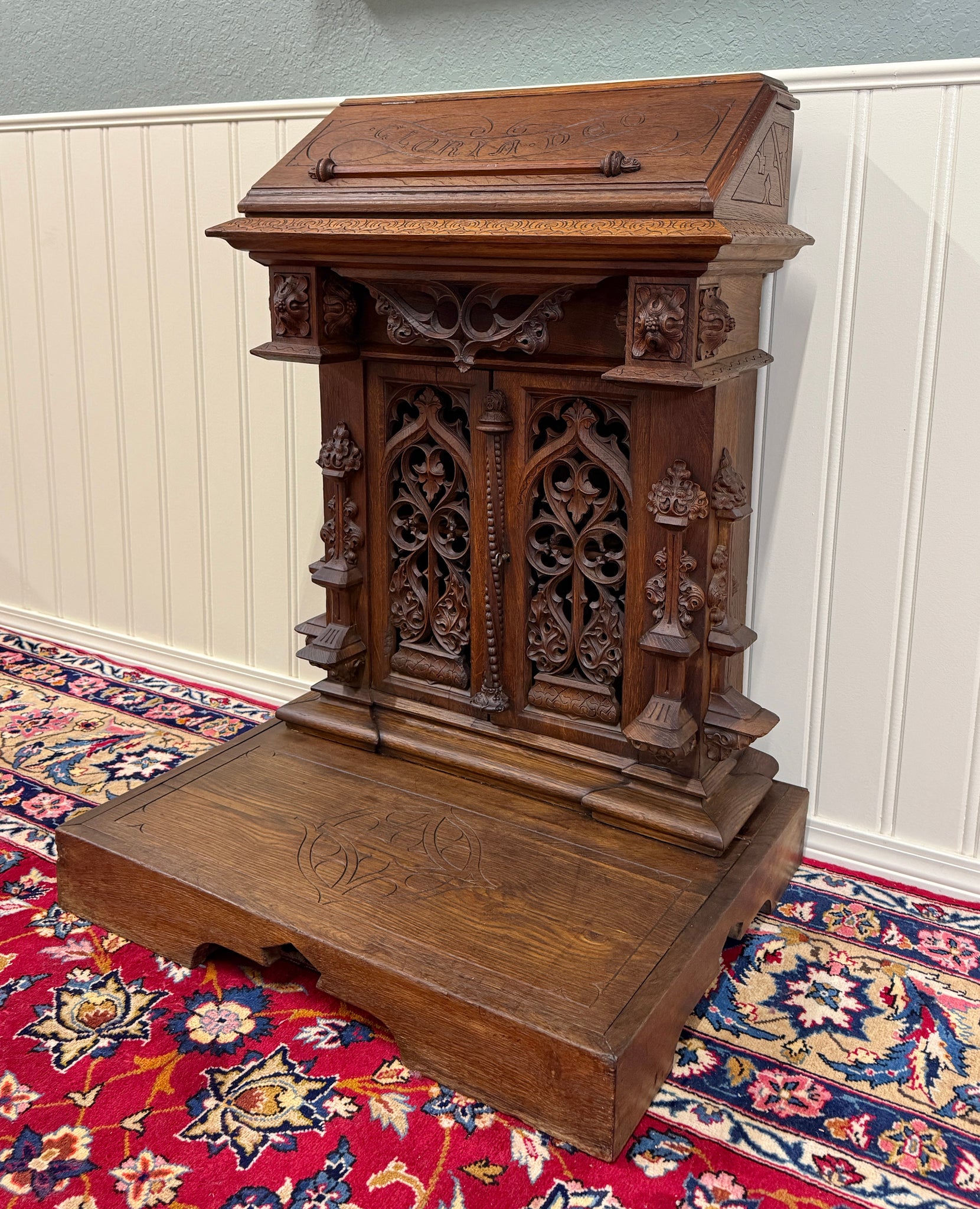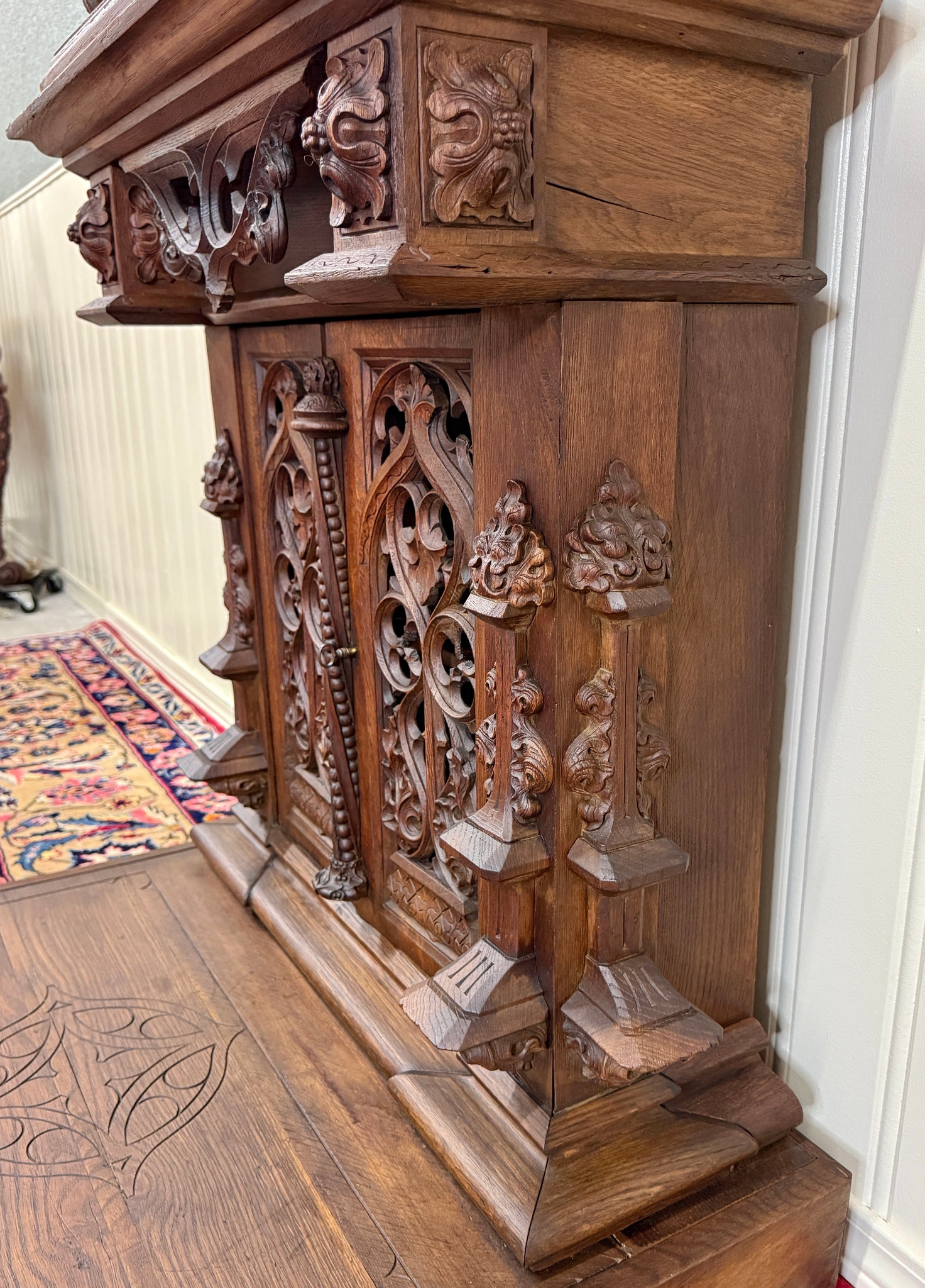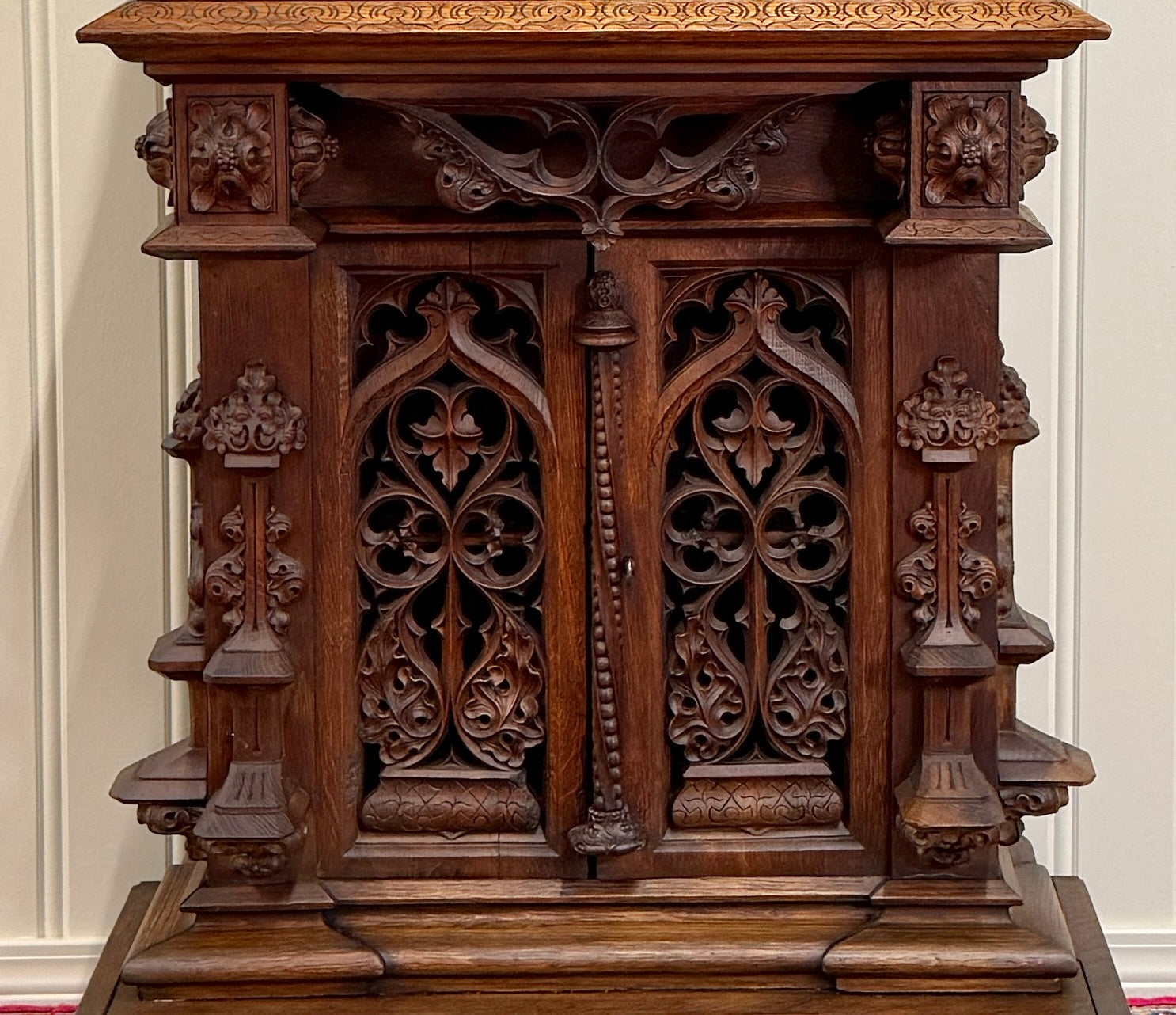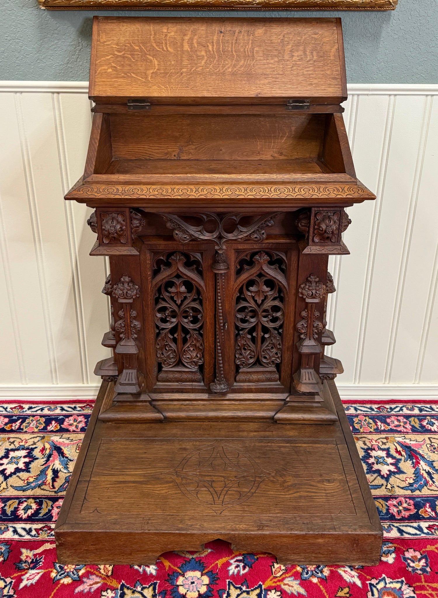 Beautifully carved with tracery and Gothic elements
