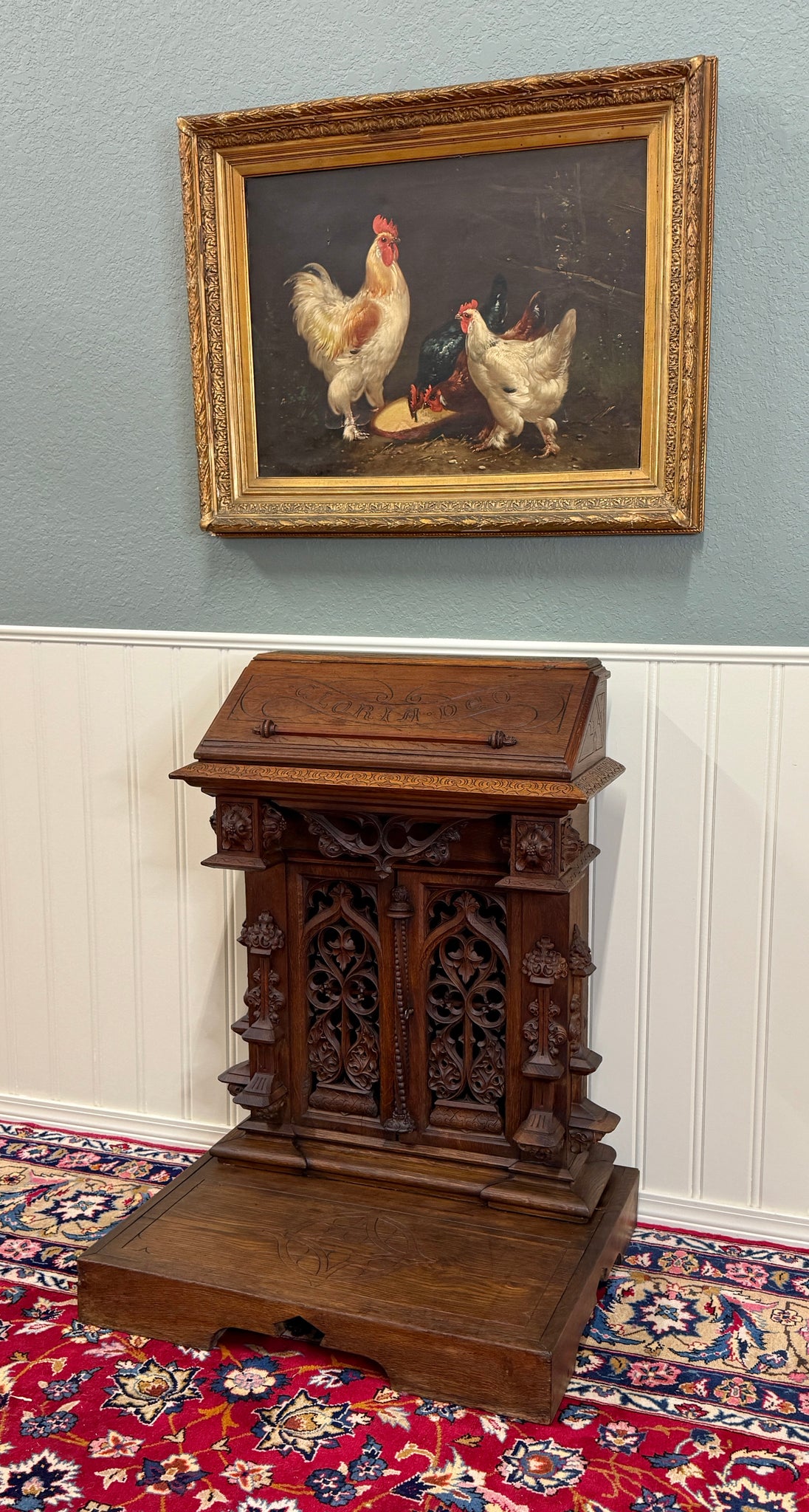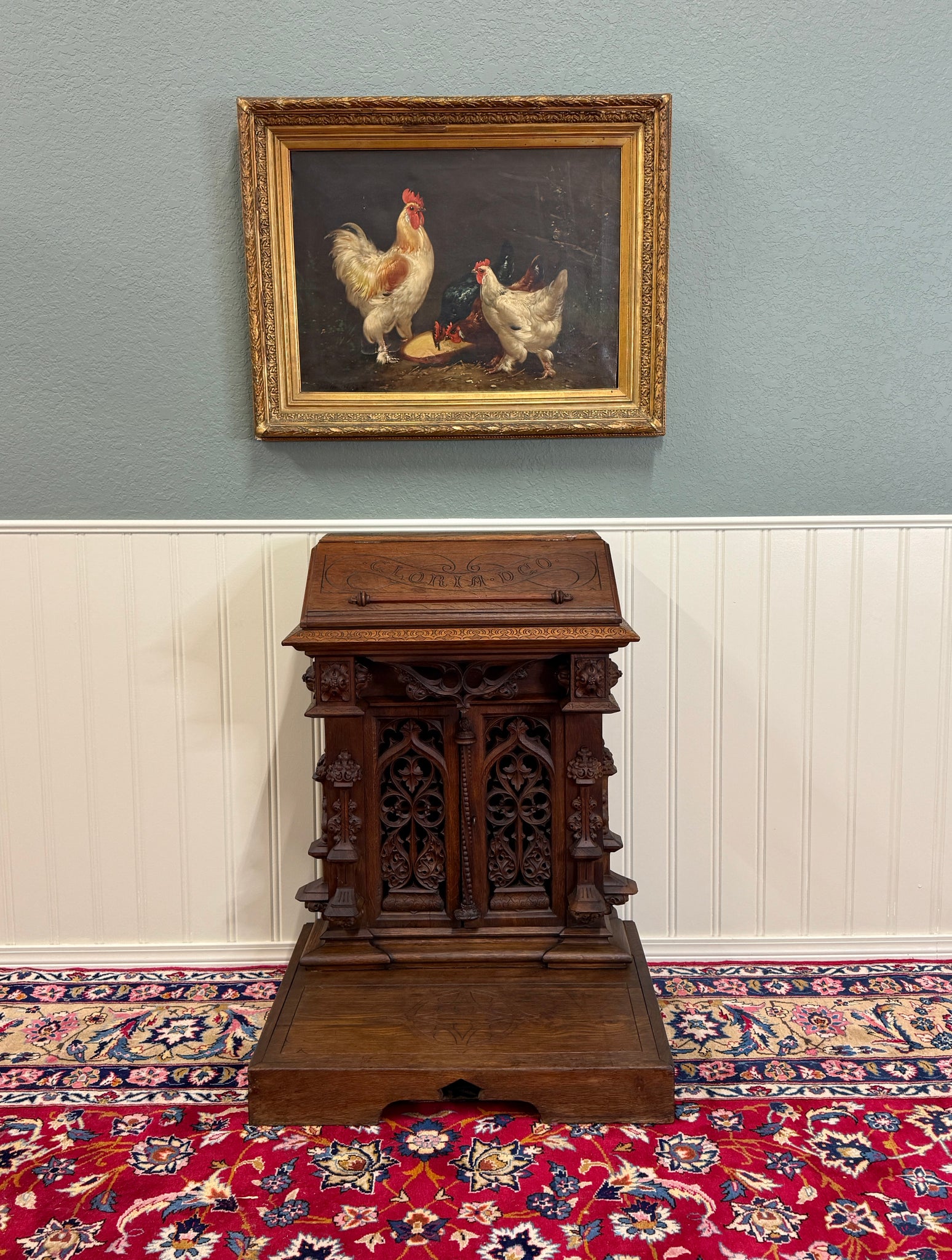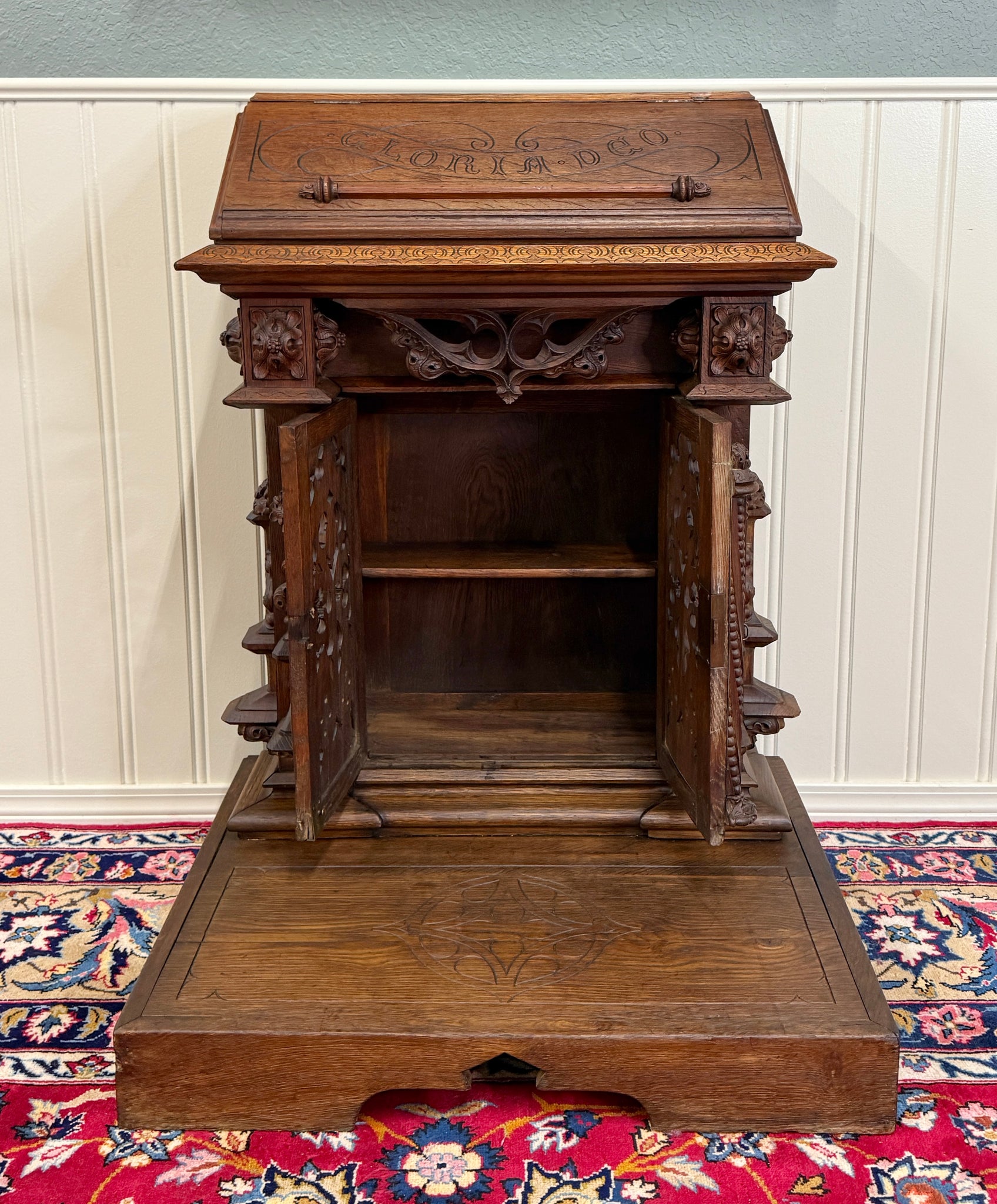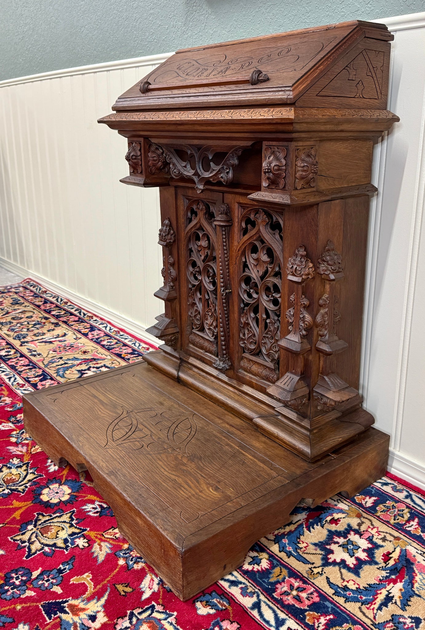 Beautifully carved with tracery and Gothic elements