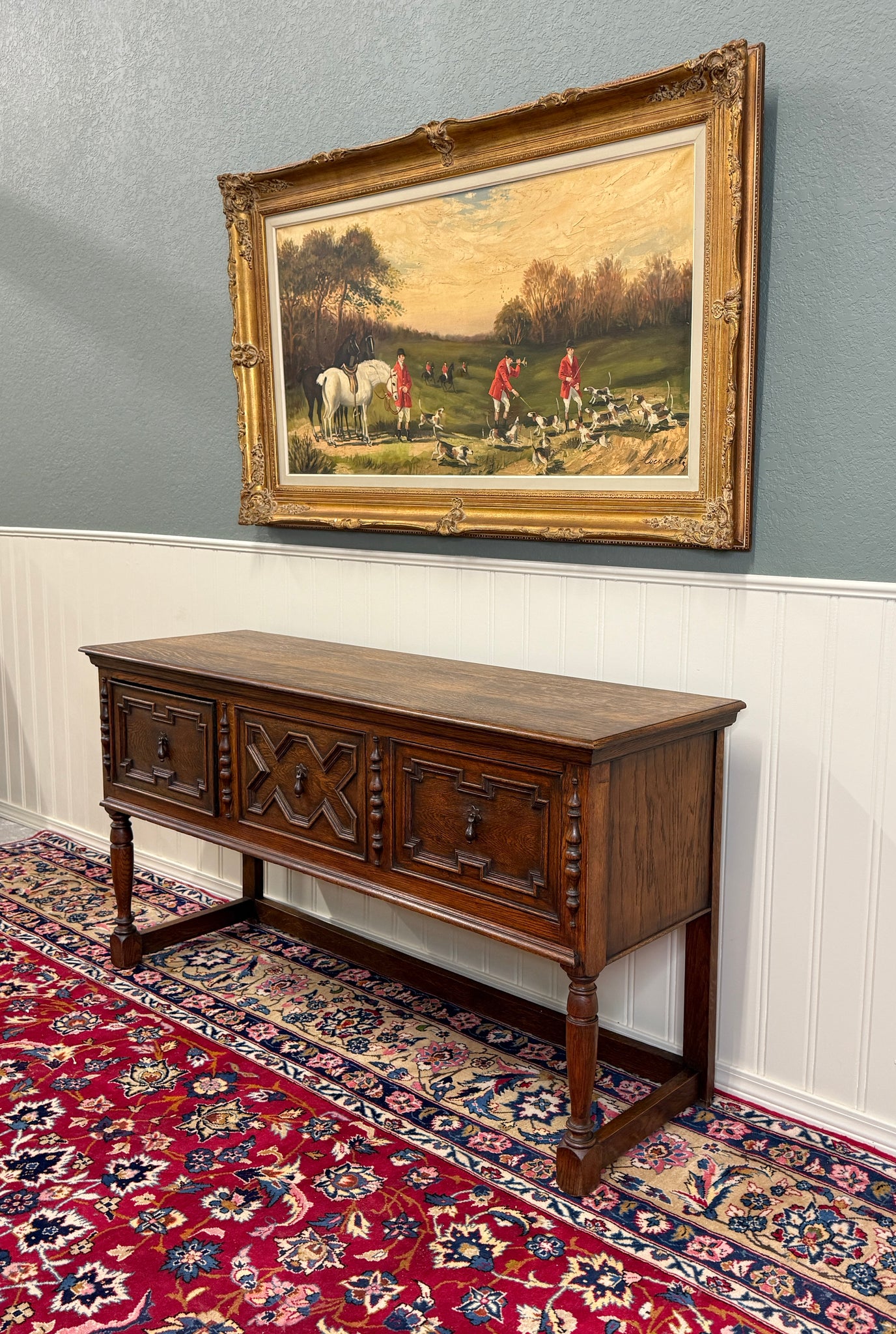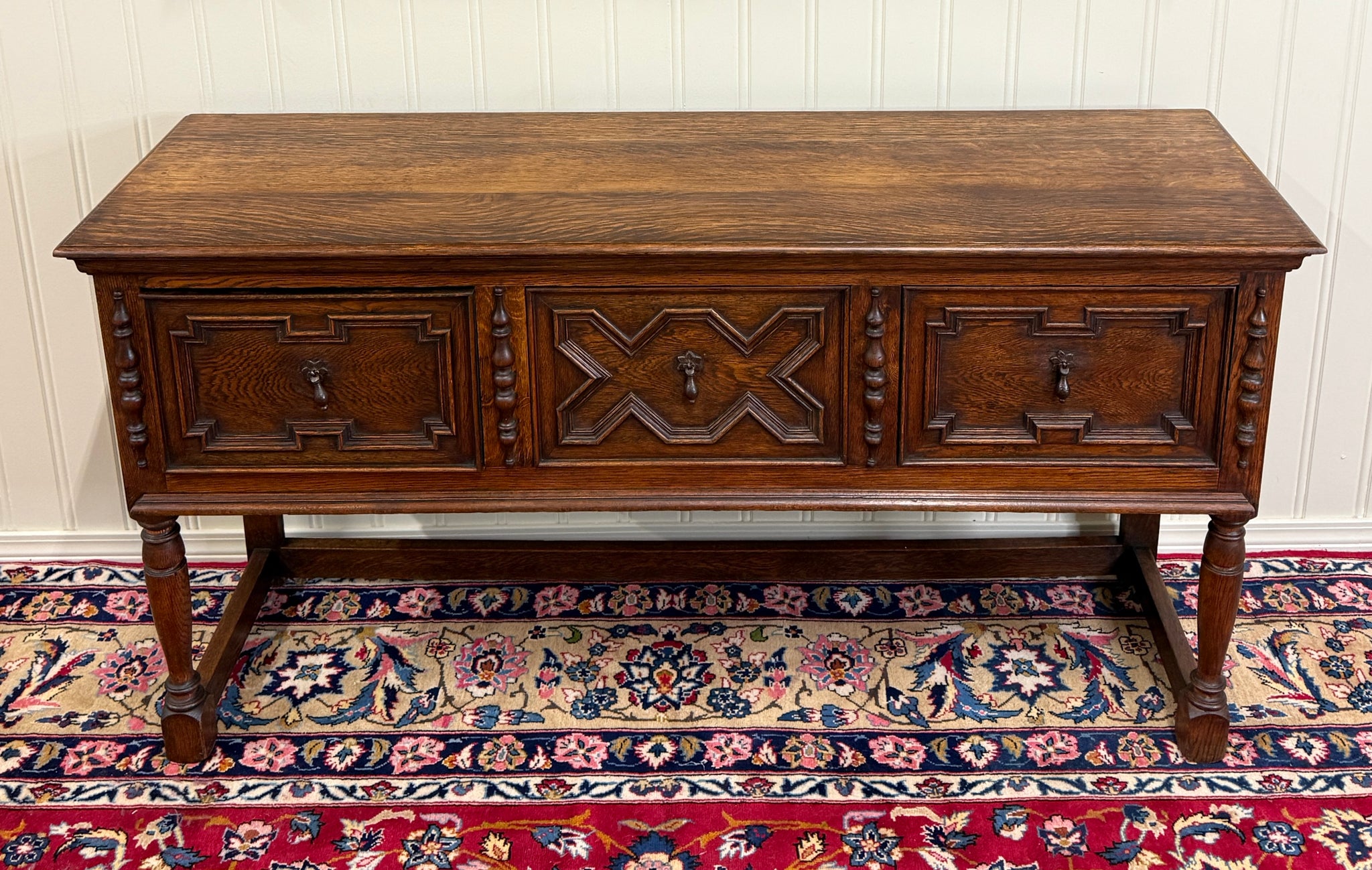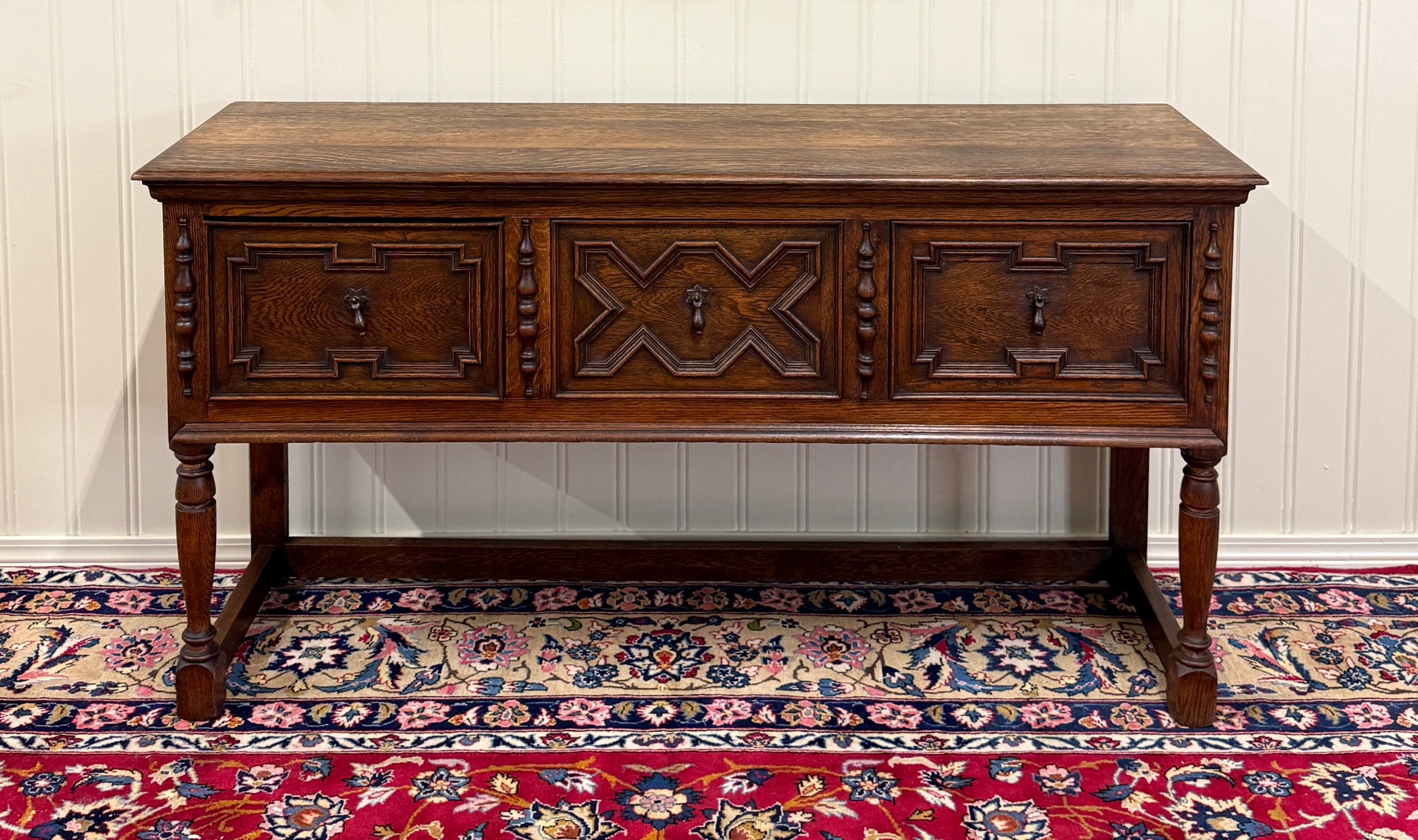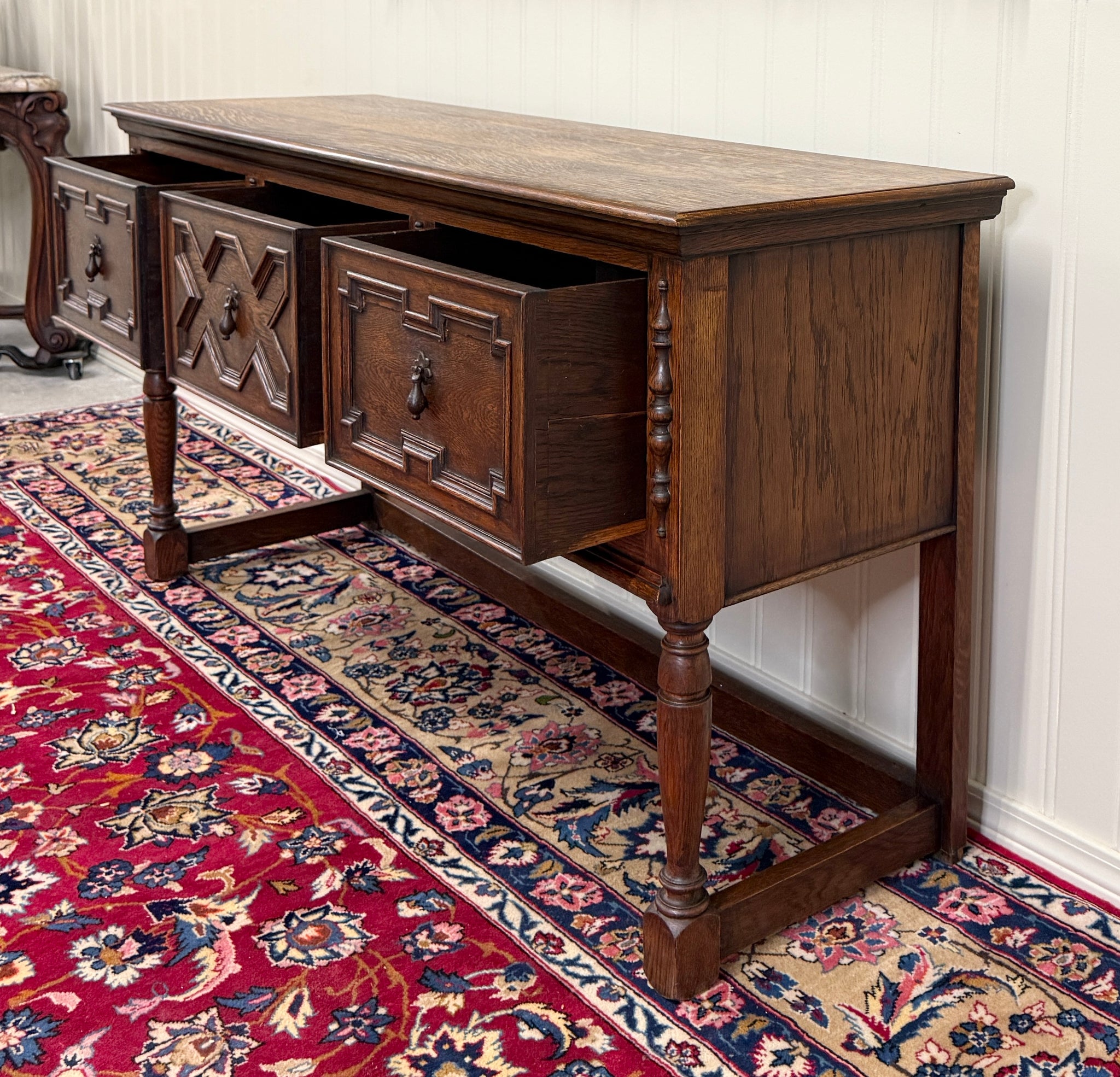 CHARMING Antique English Oak Jacobean Sideboard, Server, Console, Entry or Sofa Table c. 1930s