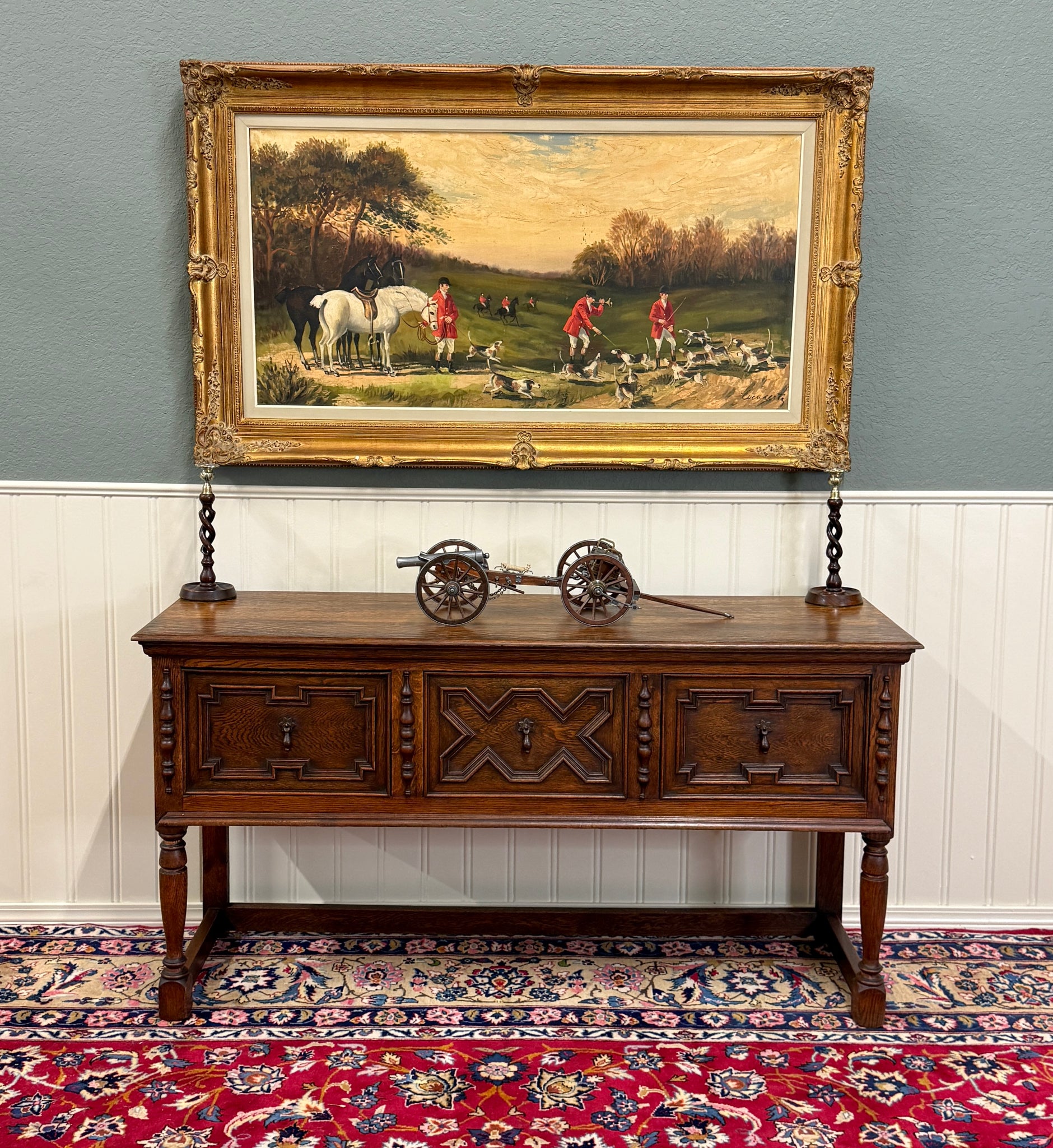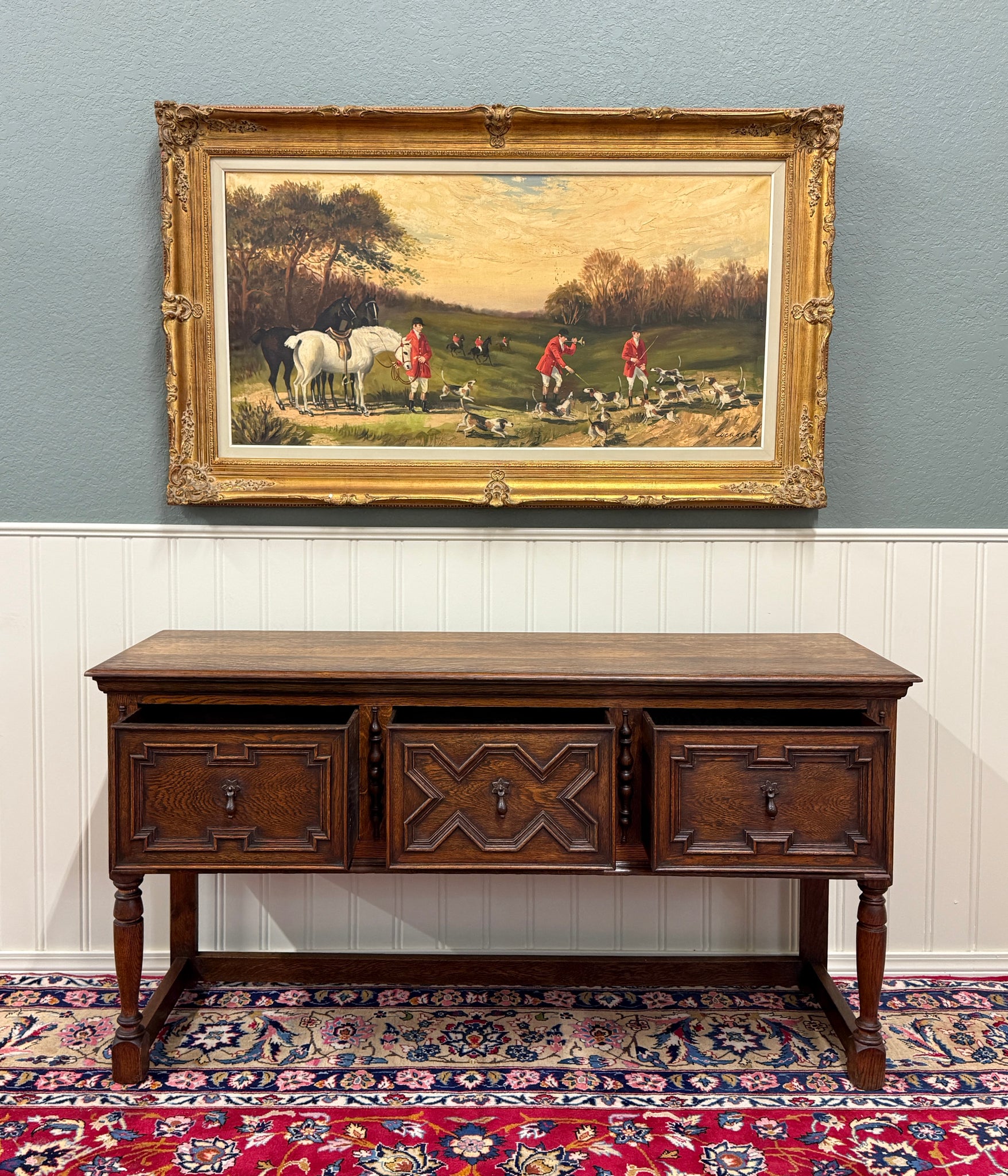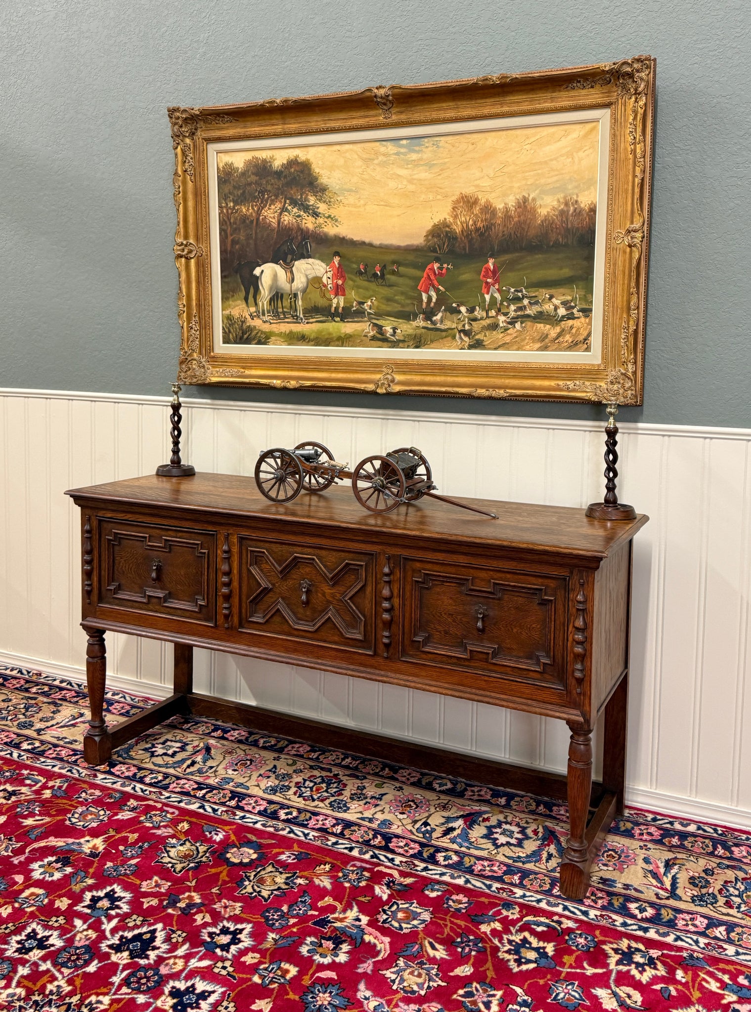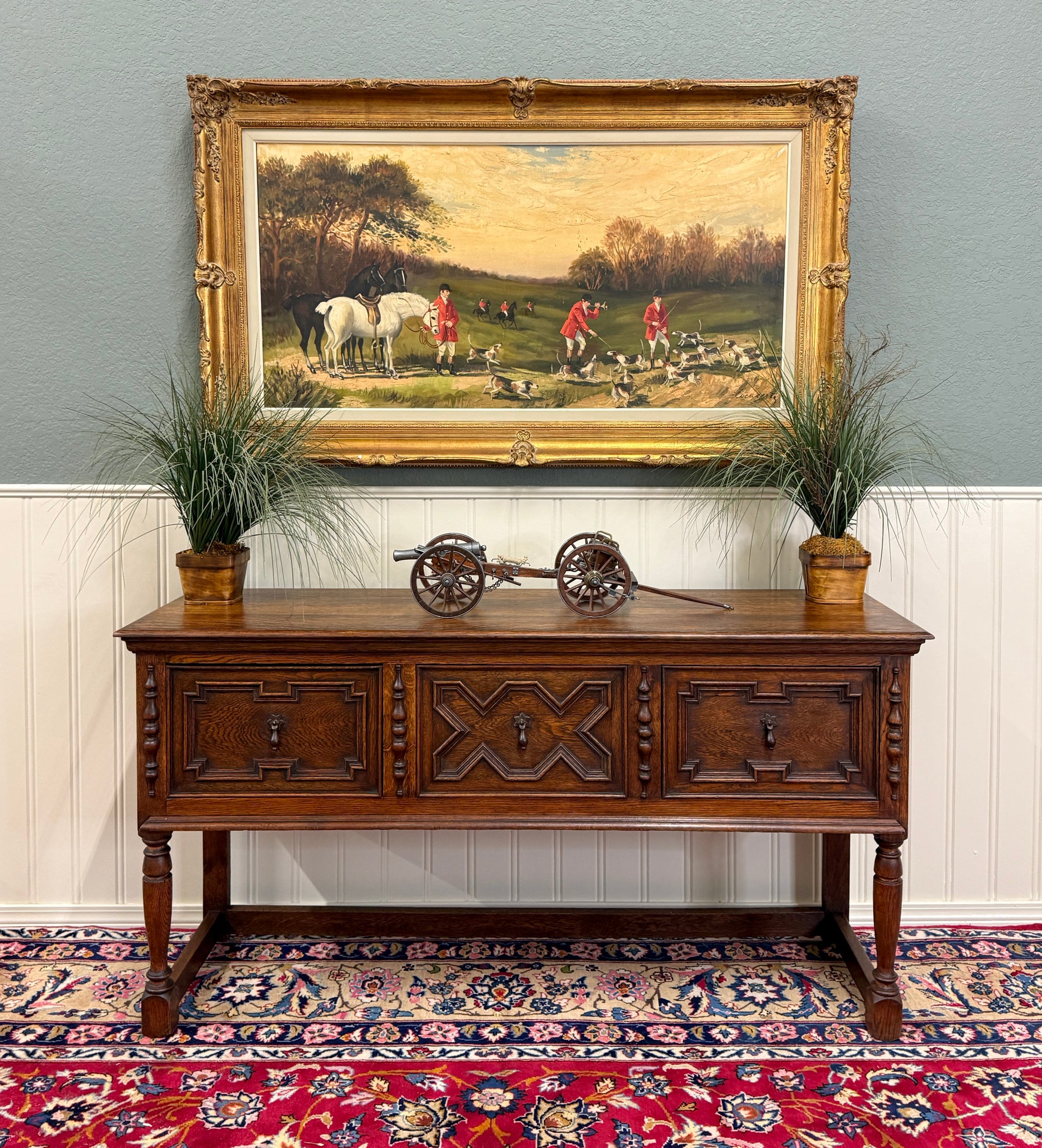 CHARMING Antique English Oak Jacobean Sideboard, Server, Console, Entry or Sofa Table c. 1930s