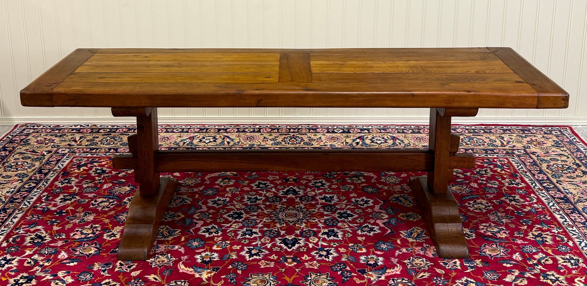 HANDSOME Antique French Country Oak Farmhouse Monastery Dining Table with Trestle Base~~c. 1900-1920