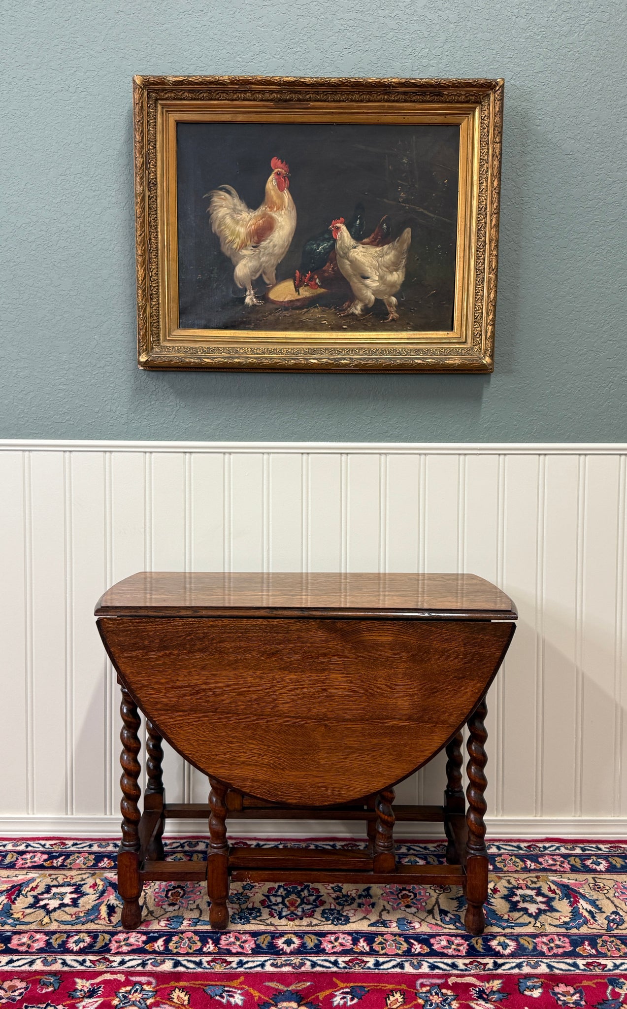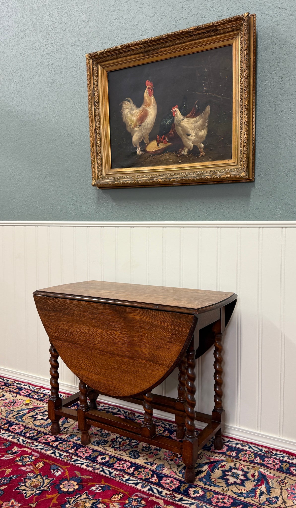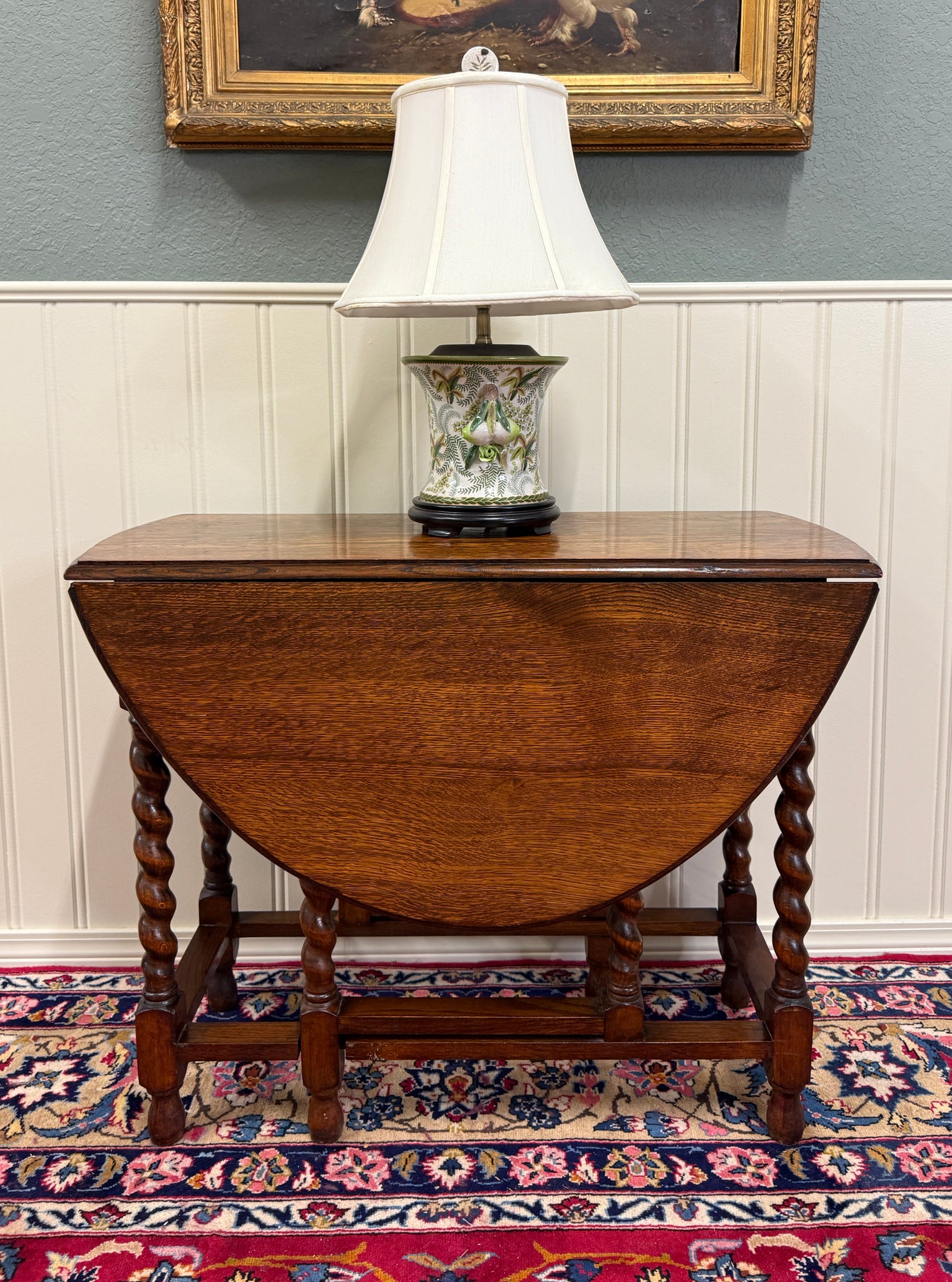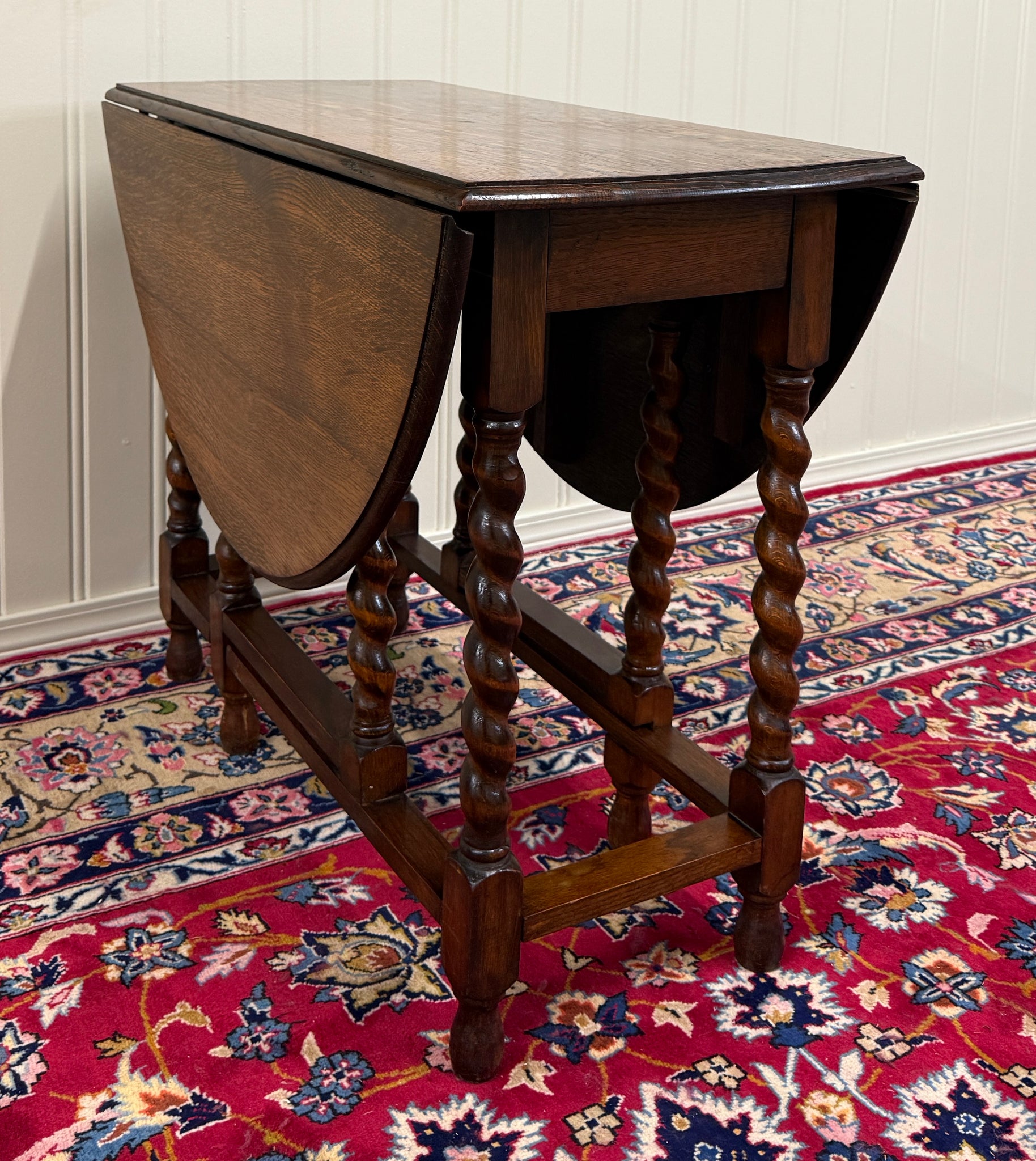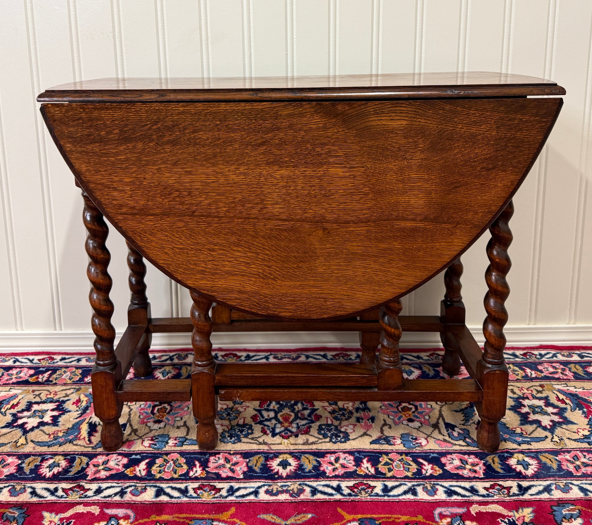CHARMING Antique English "Tiger" Oak Drop Leaf Gateleg Oval Table~~Barley Twist Legs ~~c. 1920s-1930s