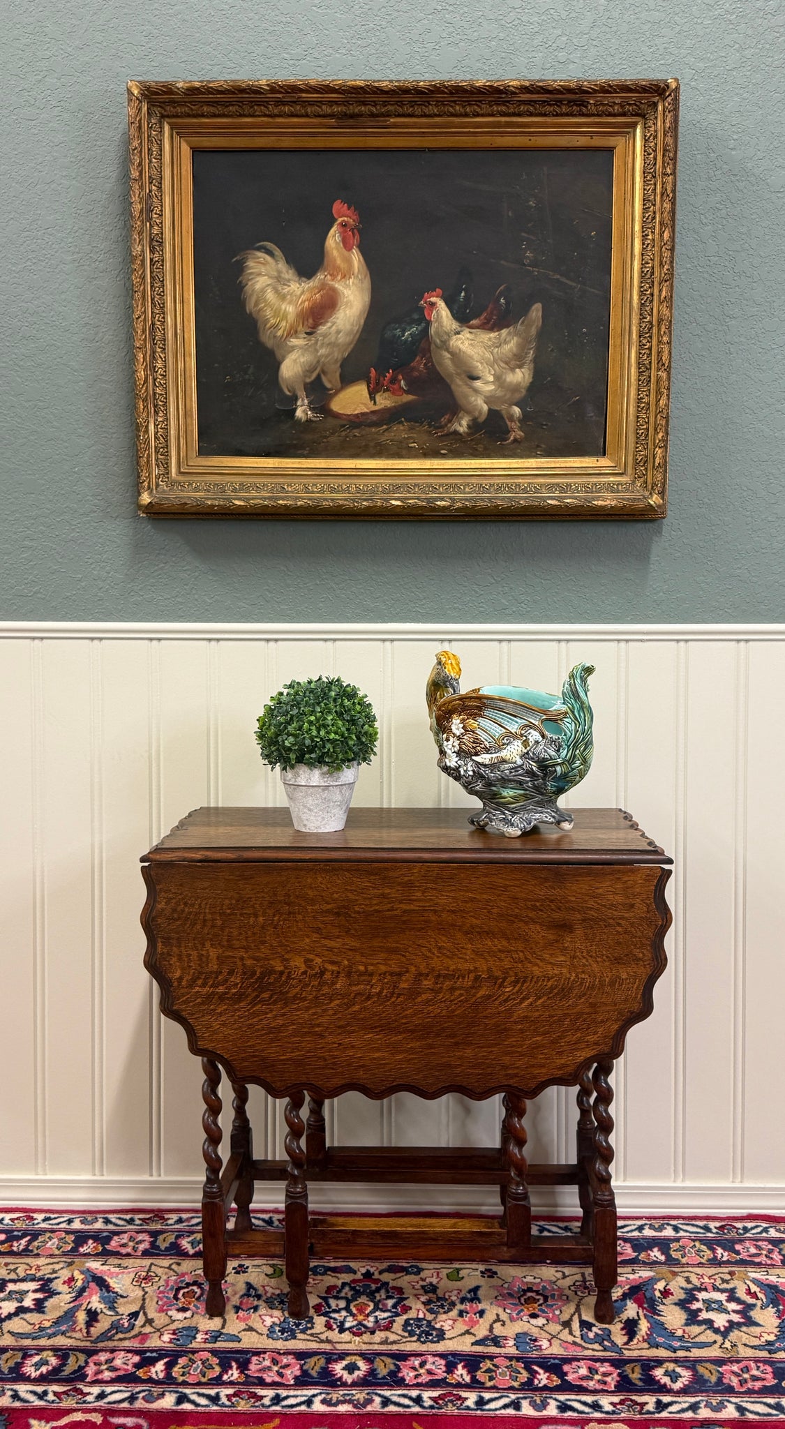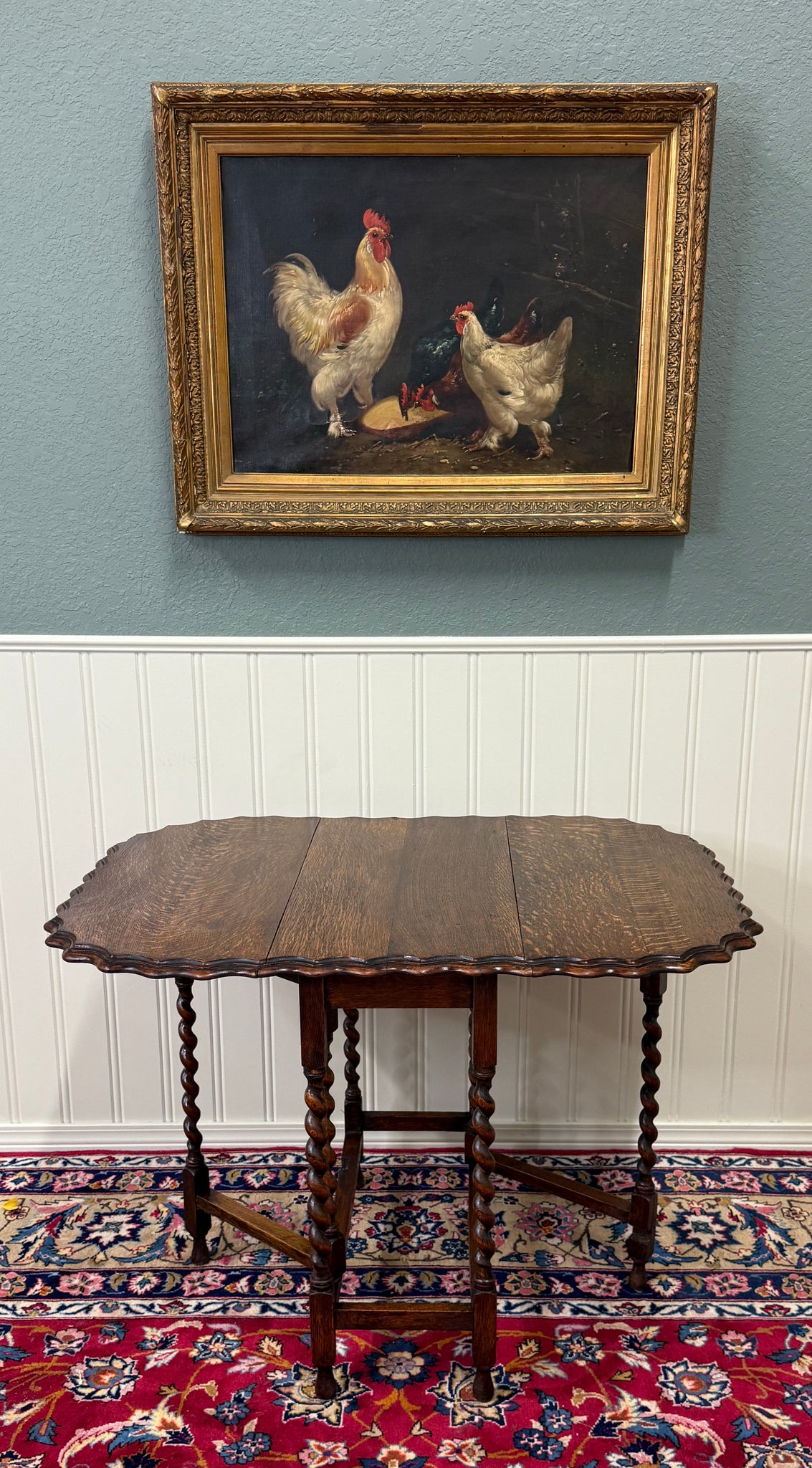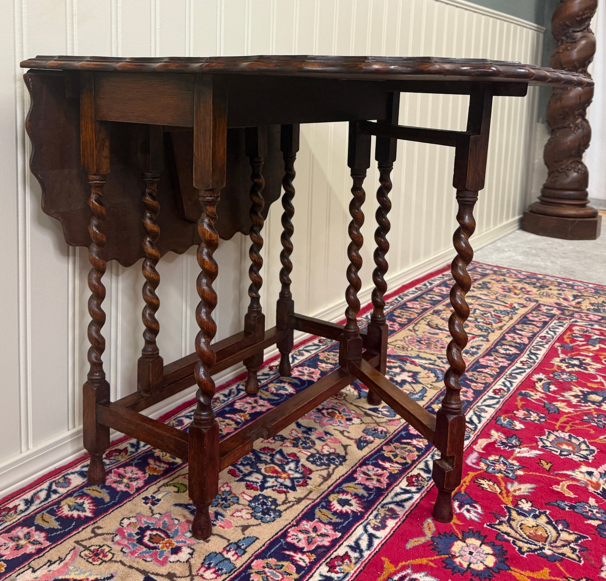 CHARMING Antique English Oak Drop Leaf Gateleg Oval Table ~~Barley Twist Legs and Pie Crust Edge Top ~~c. 1930s