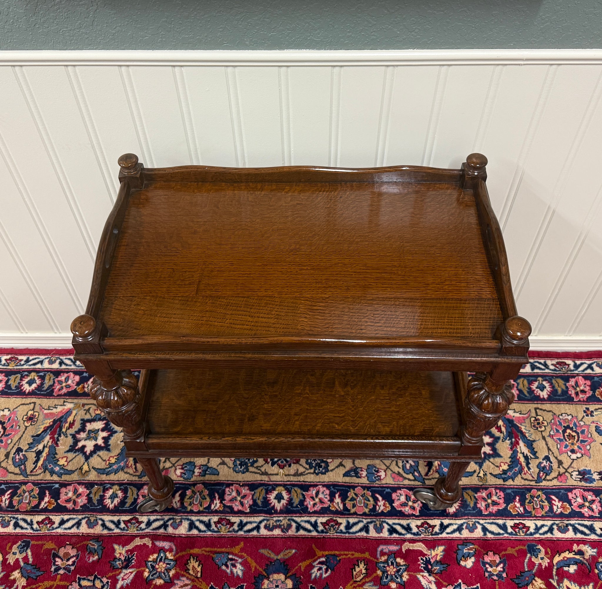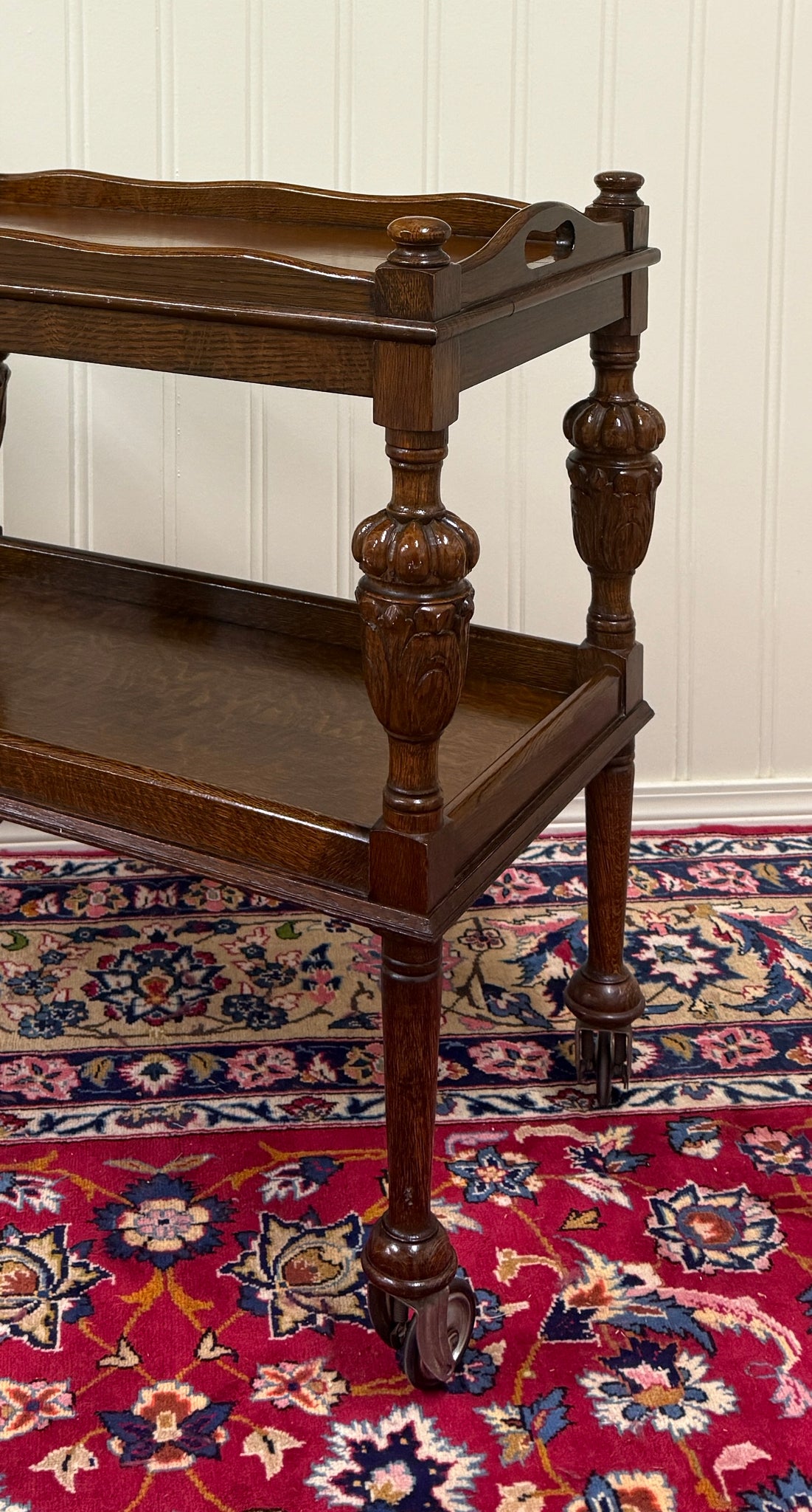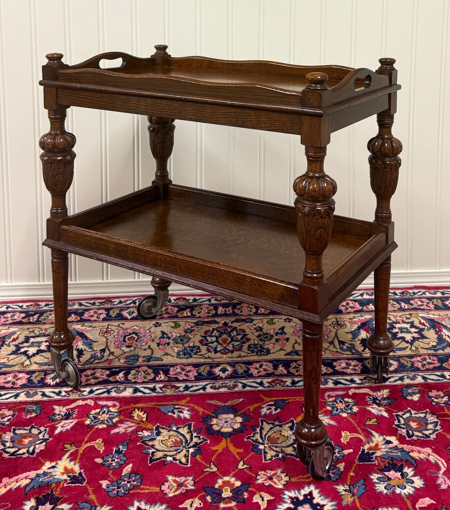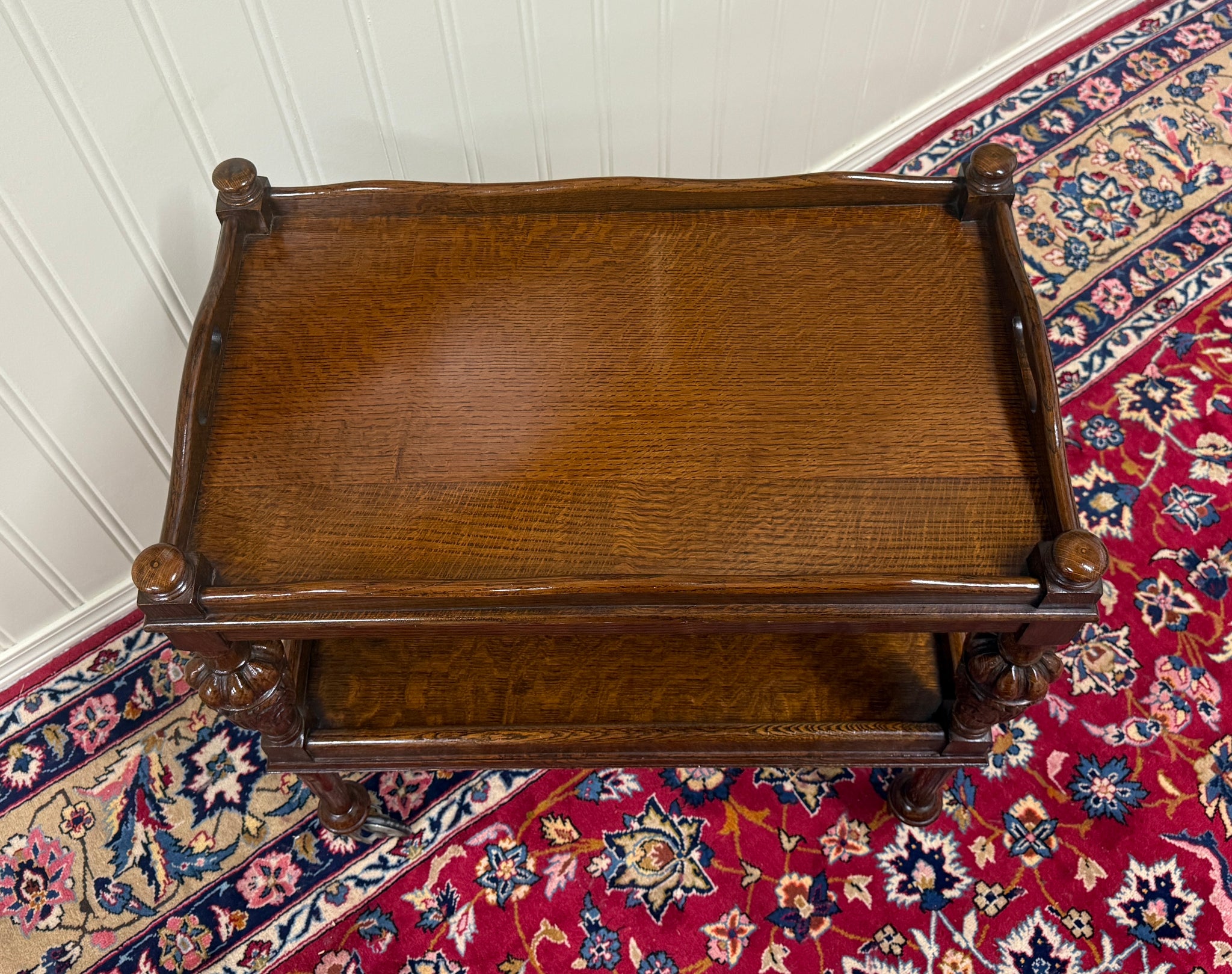 CHARMING Antique English Oak Two-Tier Tea/Pastry Cart, Trolley or End Table Side Occasional Table~~Lift Out Serving Tray~~c. 1930s