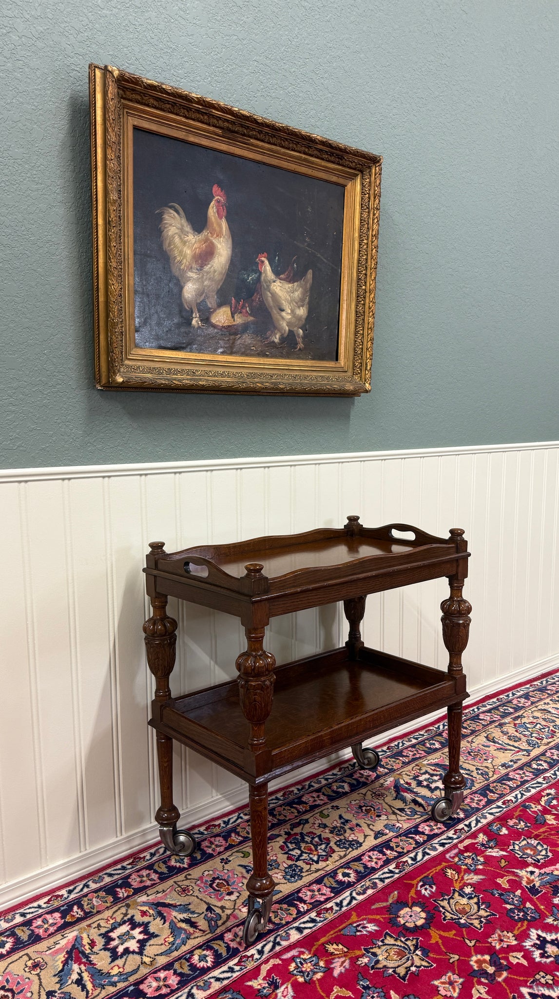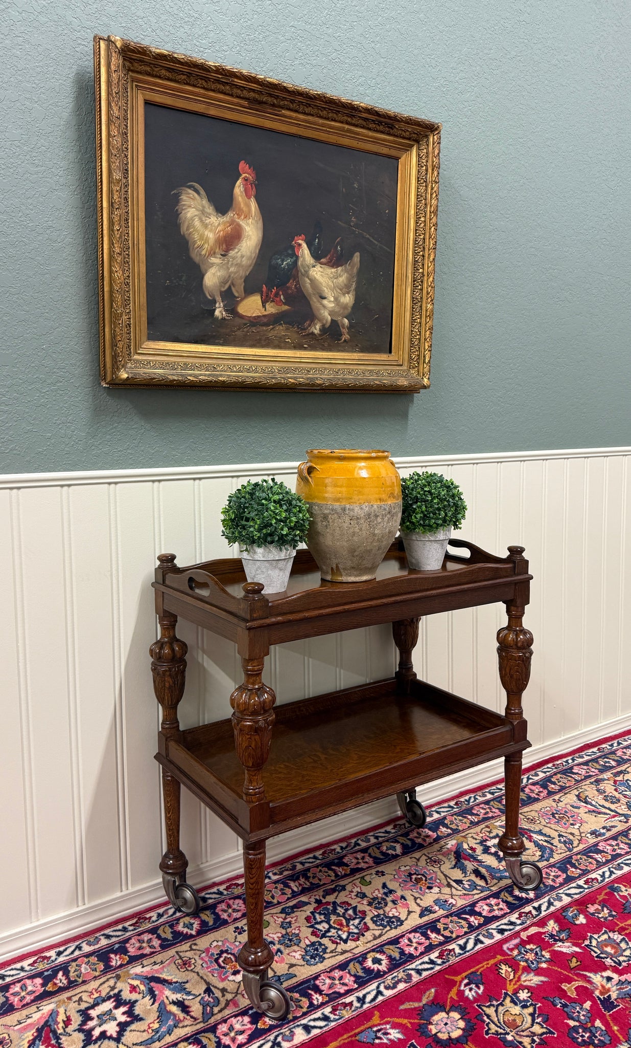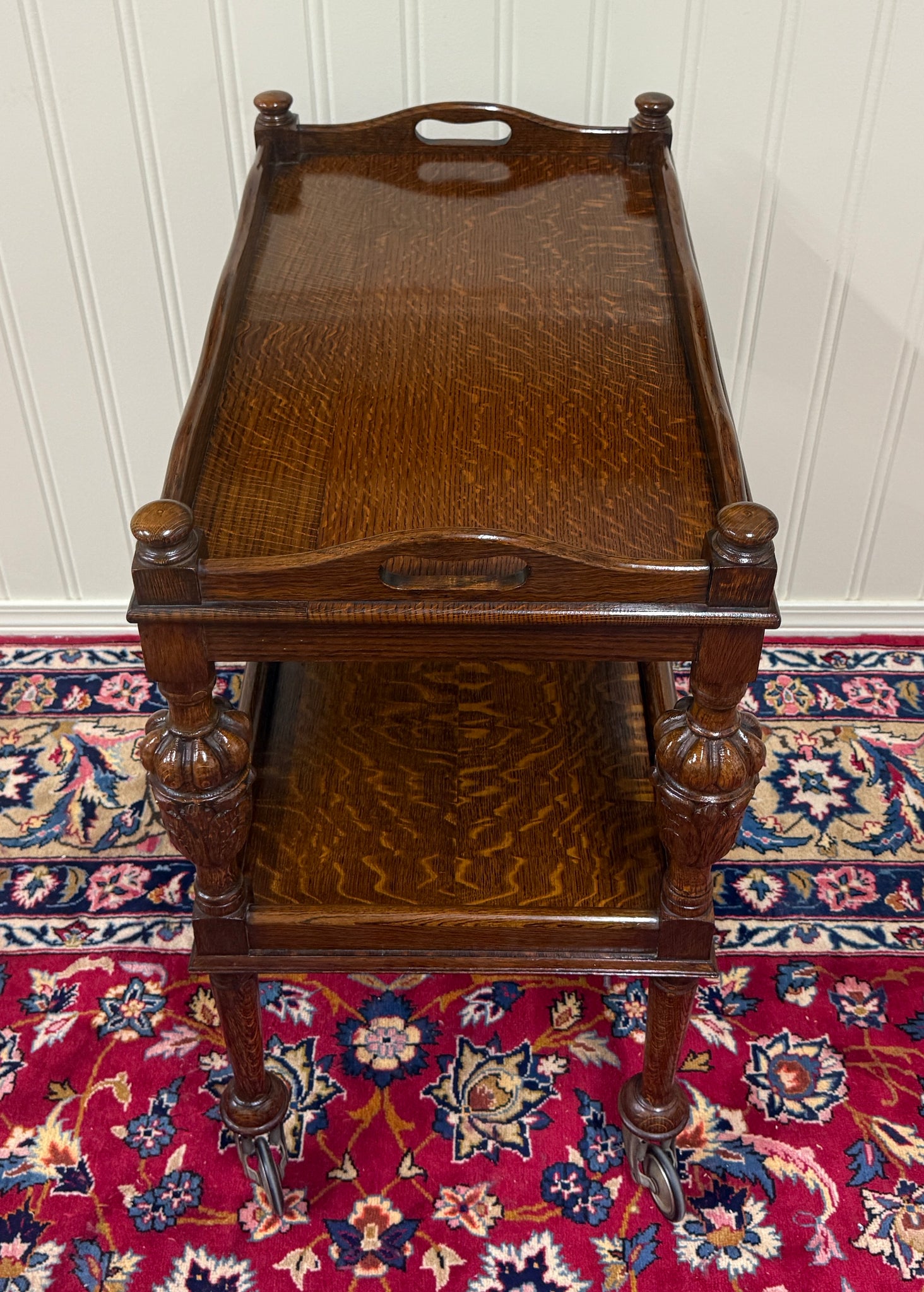 CHARMING Antique English Oak Two-Tier Tea/Pastry Cart, Trolley or End Table Side Occasional Table~~Lift Out Serving Tray~~c. 1930s