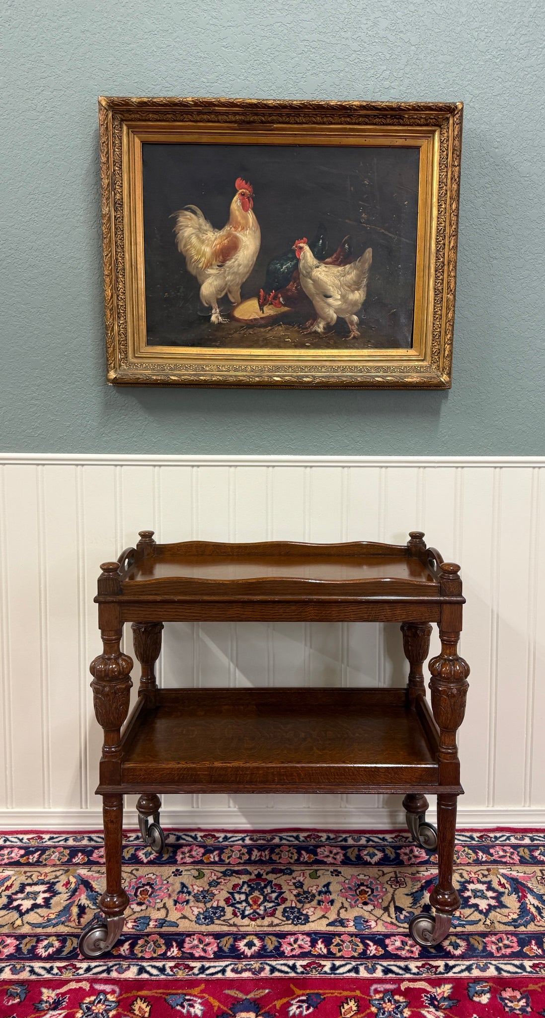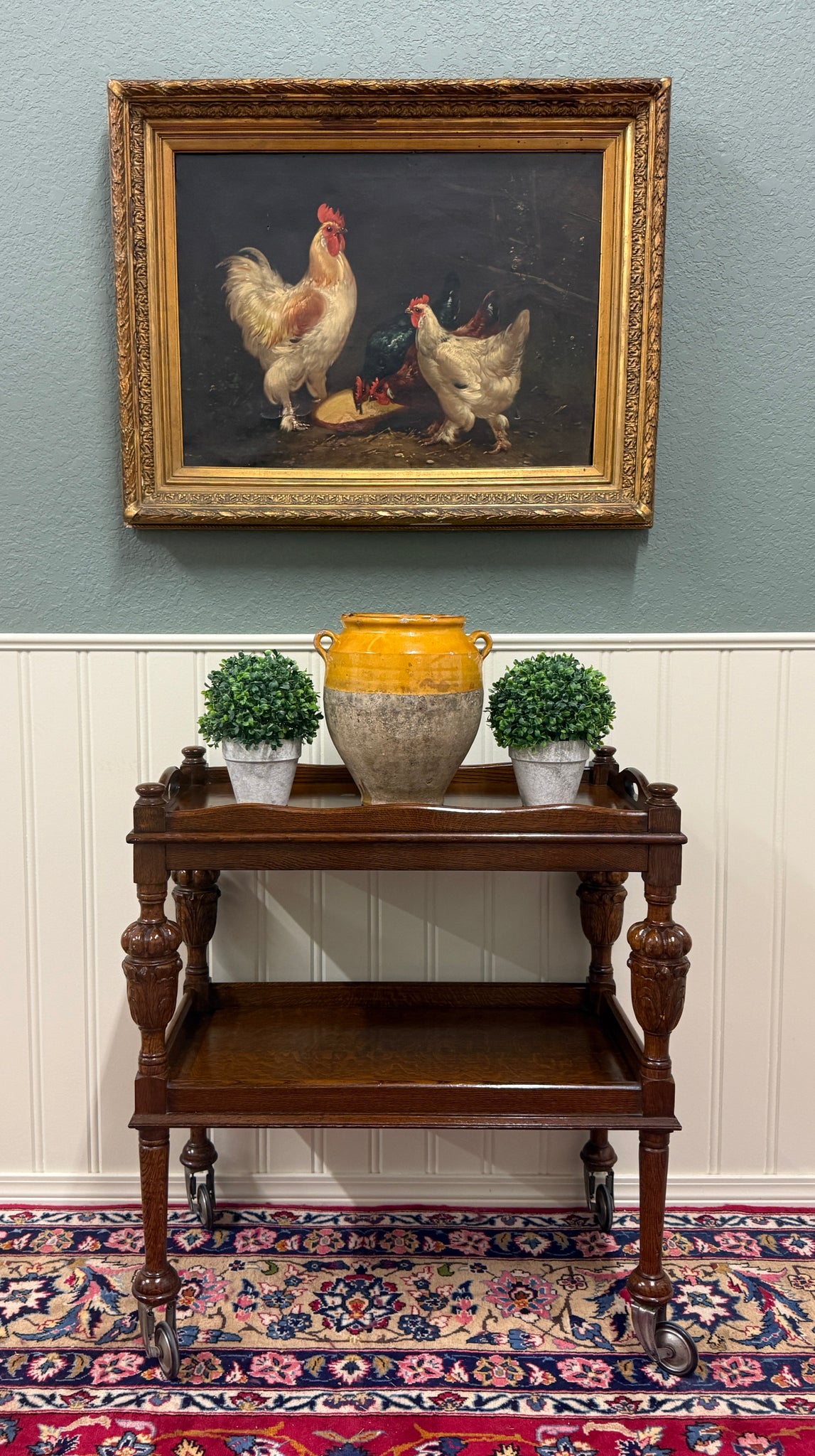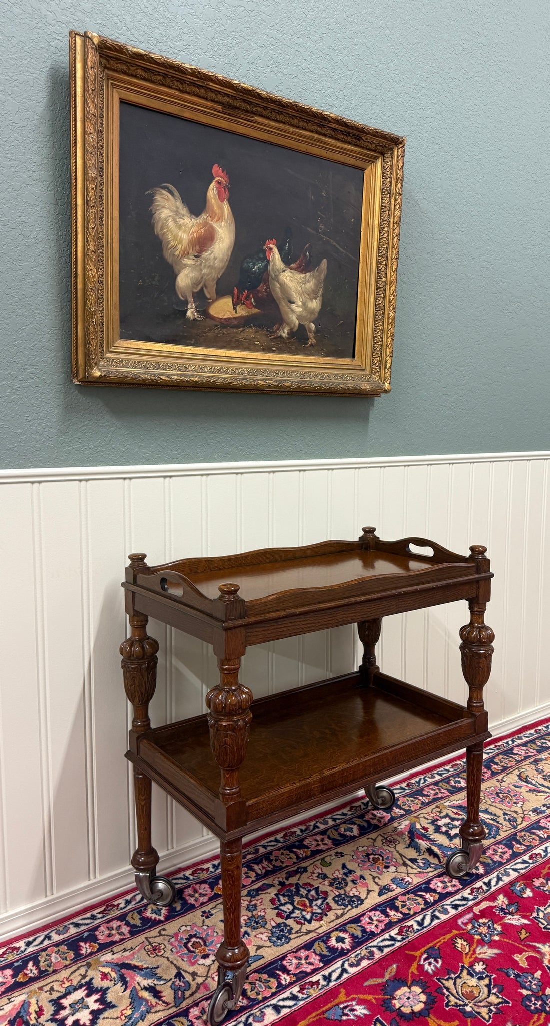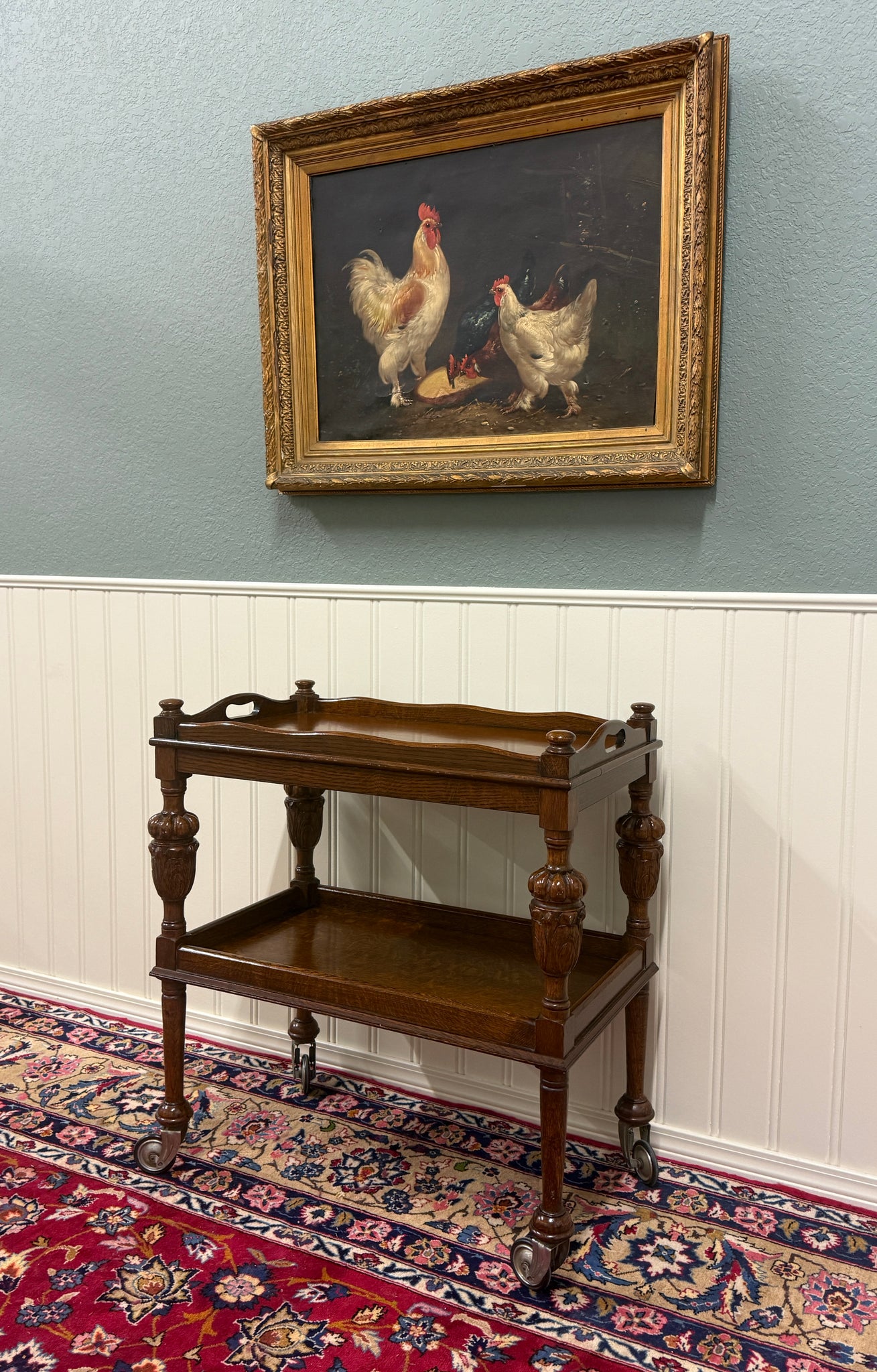 CHARMING Antique English Oak Two-Tier Tea/Pastry Cart, Trolley or End Table Side Occasional Table~~Lift Out Serving Tray~~c. 1930s
