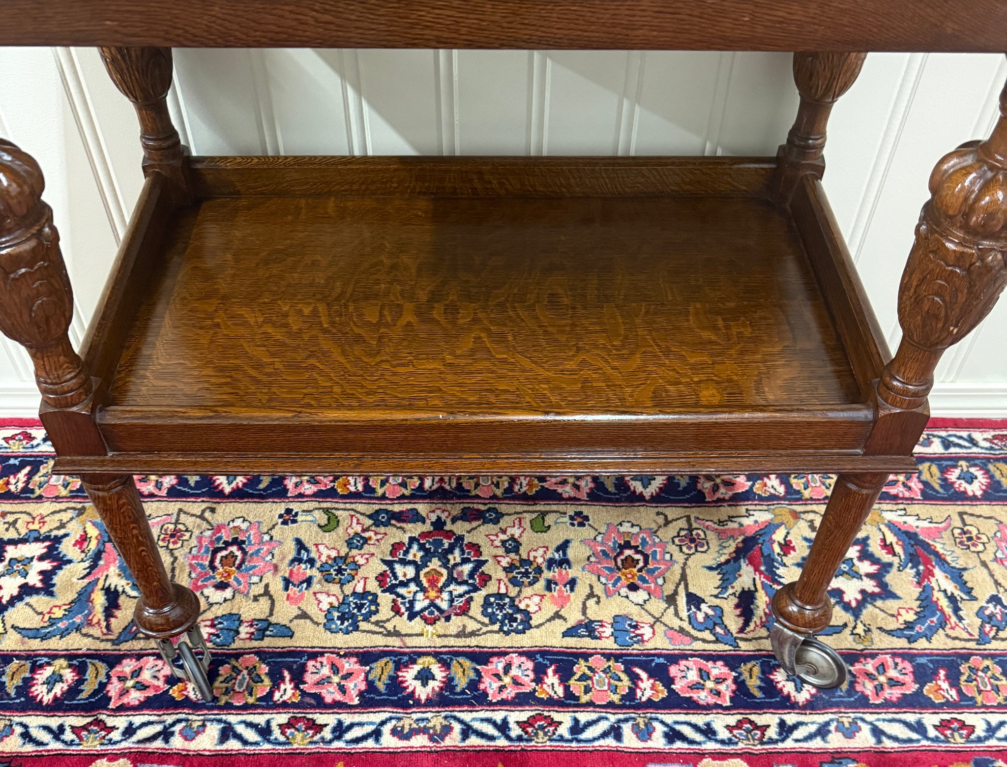 Antique English Trolley Tea Cart Pastry Cocktail Bar Cart Tray Tudor Oak 1930s