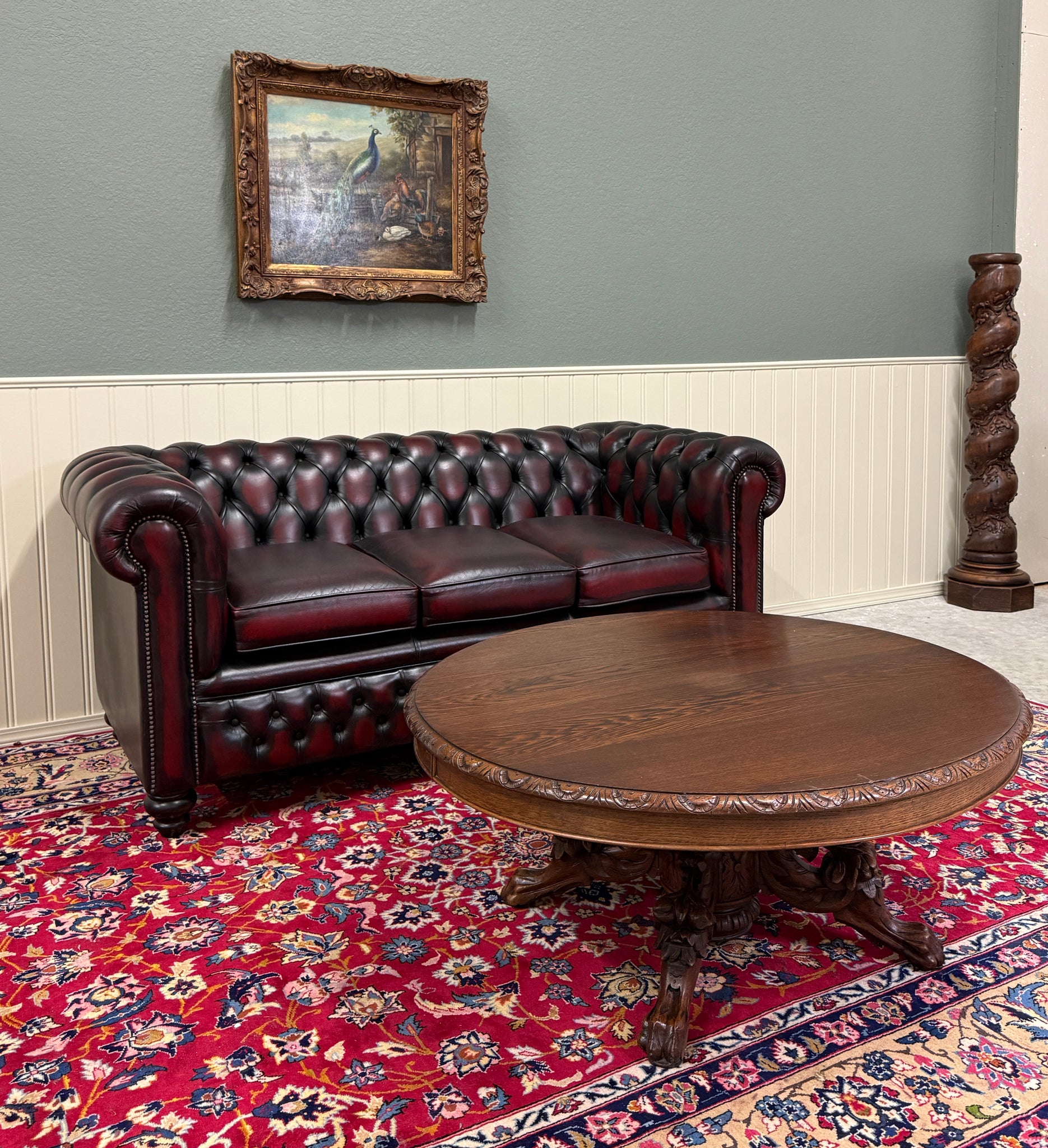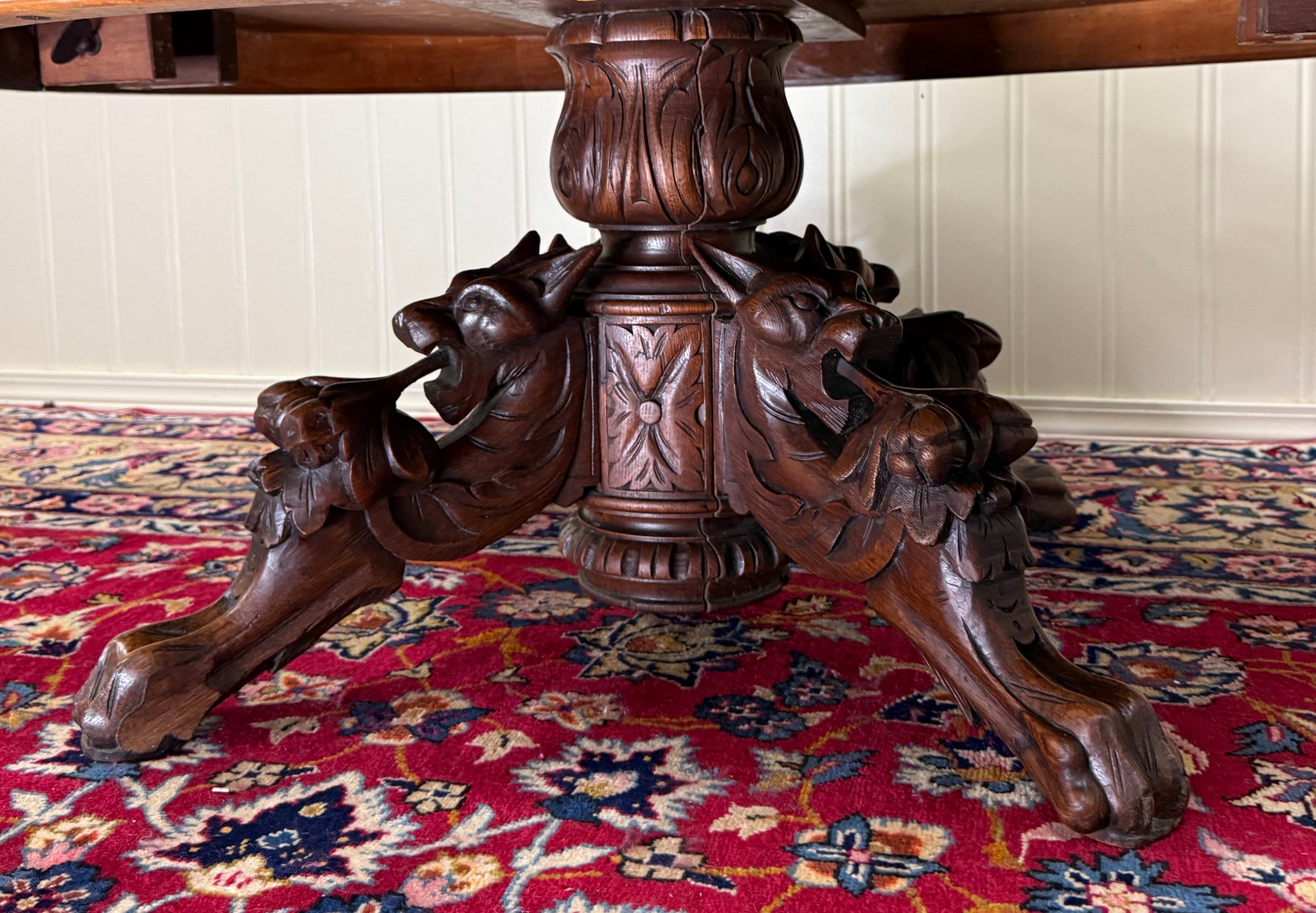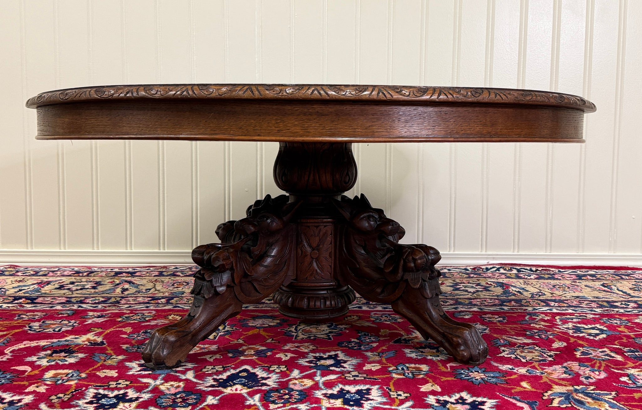 RARE FIND Antique Oak French Black Forest "Hunt" Style OVAL Coffee Table with Carved Griffin Pedestal Base~~c. 1890s